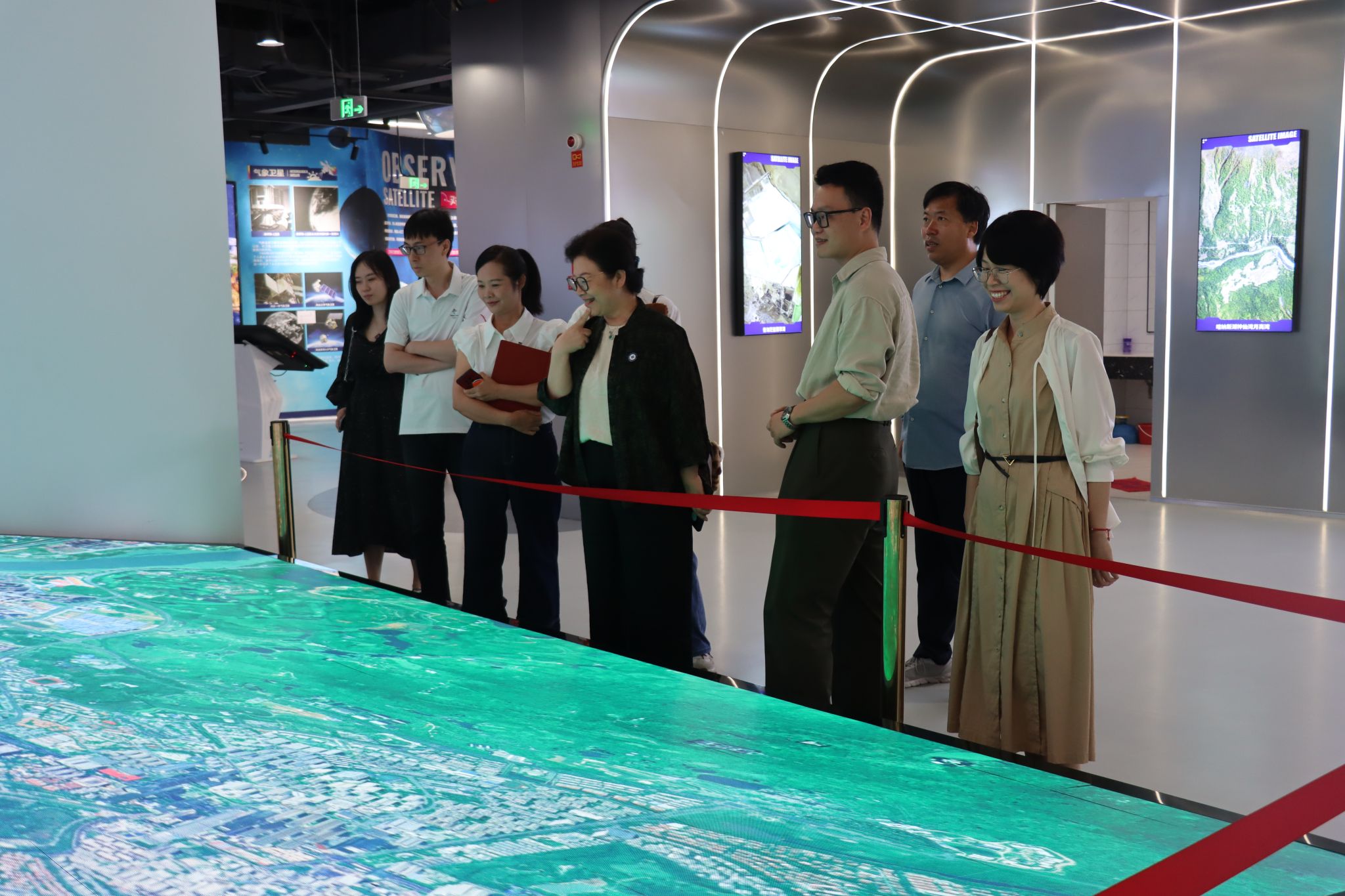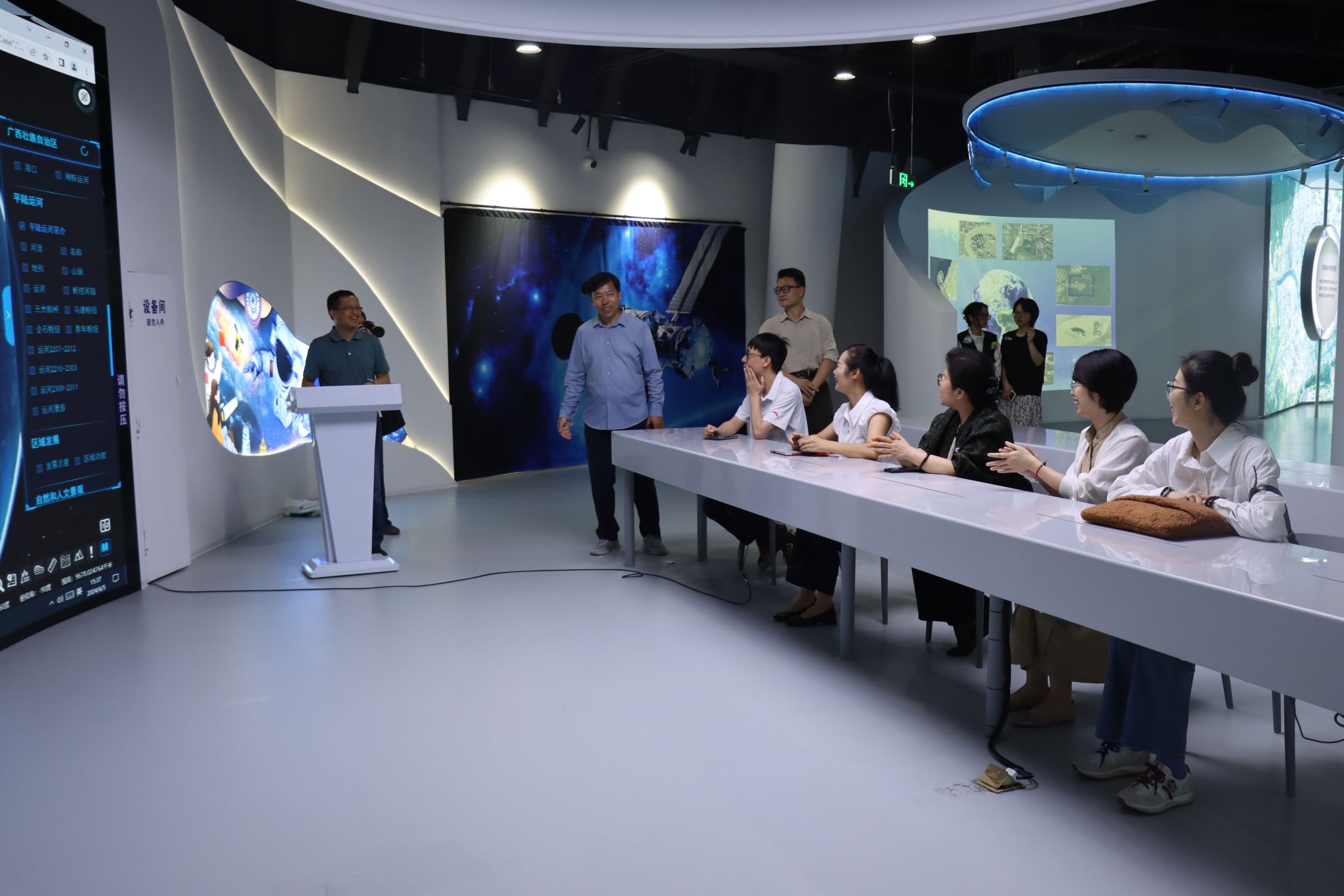 闫枭带领我院教师参观遥感馆和航天馆,他说,星耀南宁航天研学基地聚焦于遥感技术资源整合、管理和多学科运用,力求通过研学项目开展,让学生了解地理信息,解决实际性的地理问题。除此之外,研学基地还计划将爱国主题教育和地理信息教育结合起来,不断强化学生爱国意识,增强其地理学习能力。