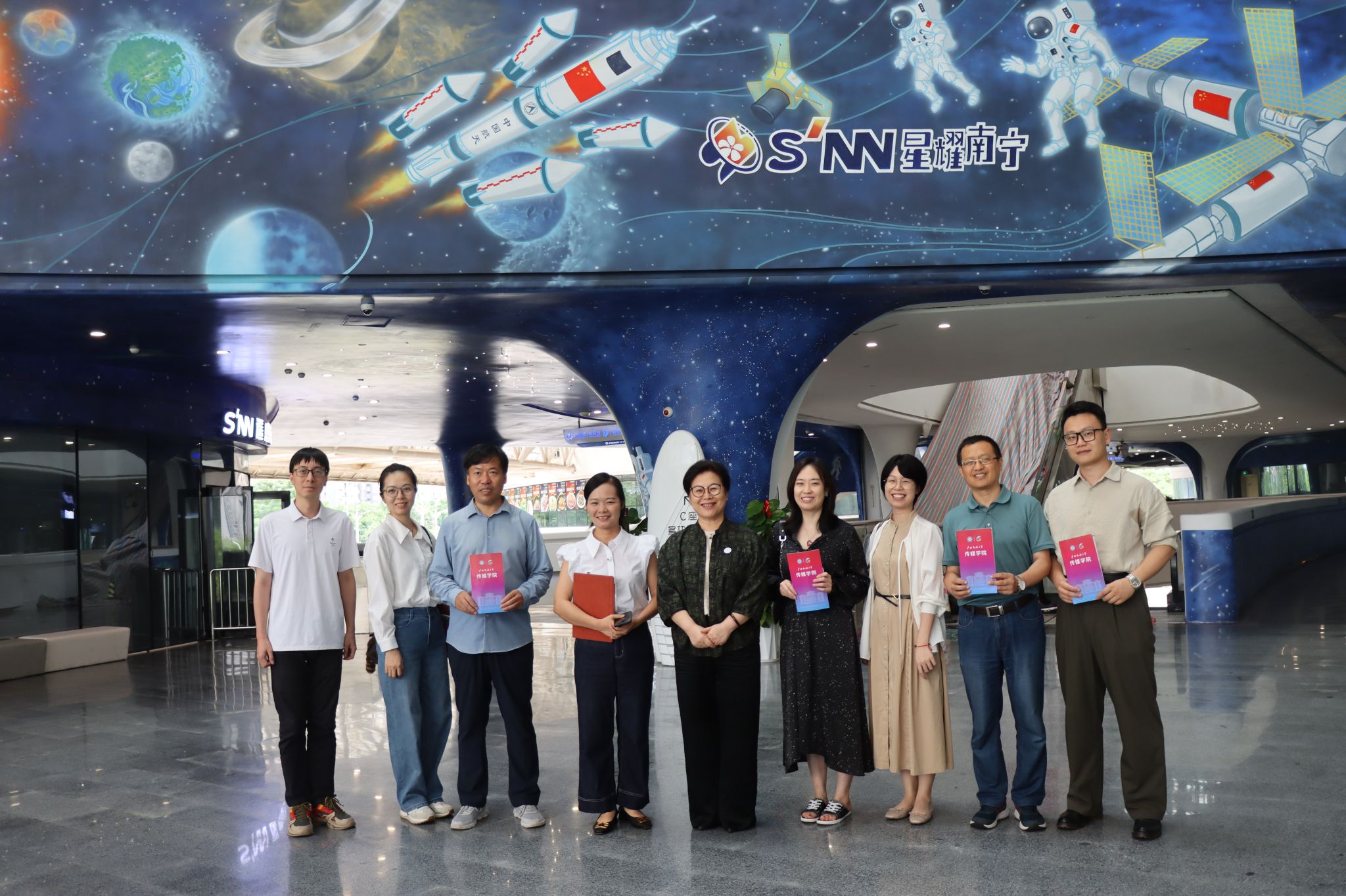 6月5日下午,我院院长杨学明等一行五人在二十一世纪空间技术应用股份有限公司教育教学业务副总经理李大翔、南宁世纪空间技术应用有限公司市场经理王井英、星耀南宁科学馆教研组组长闫枭等人引导下,来到星耀南宁航天研学基地共同参观“星耀南宁”科学馆。