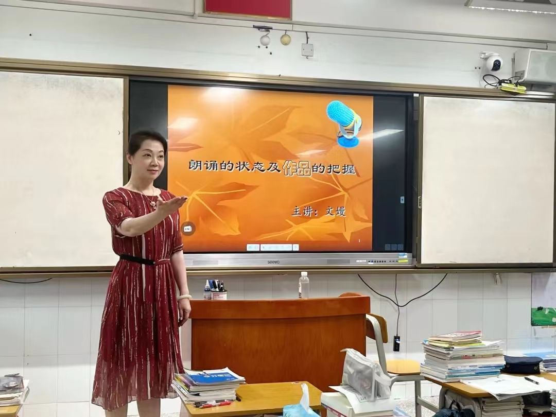 在课堂上,文嫚老师首先向学生们介绍了朗诵的基本技巧和状态调整方法。她强调,朗诵不仅仅是读出文字,更是要通过声音传达出作品的情感和内涵。