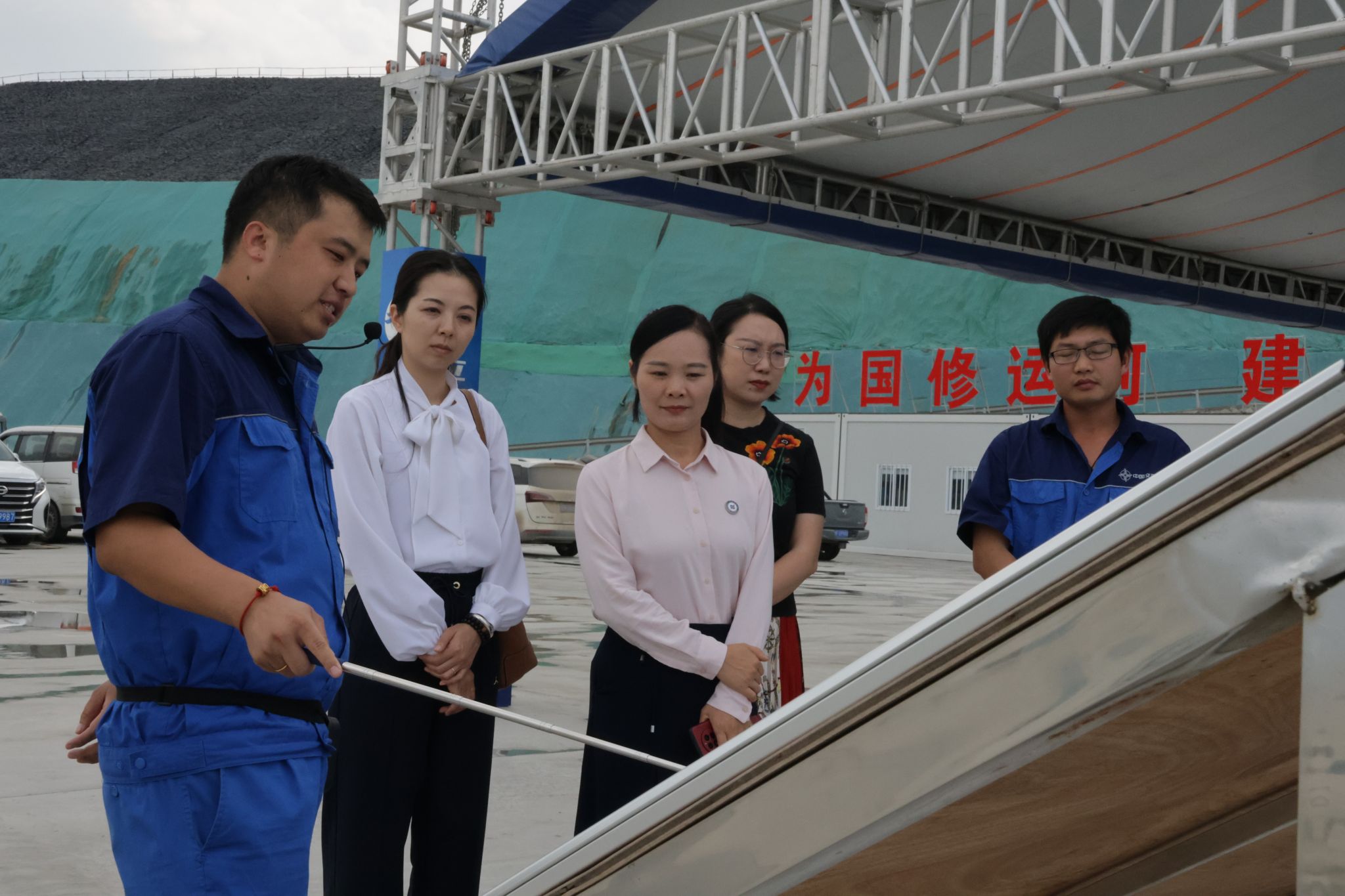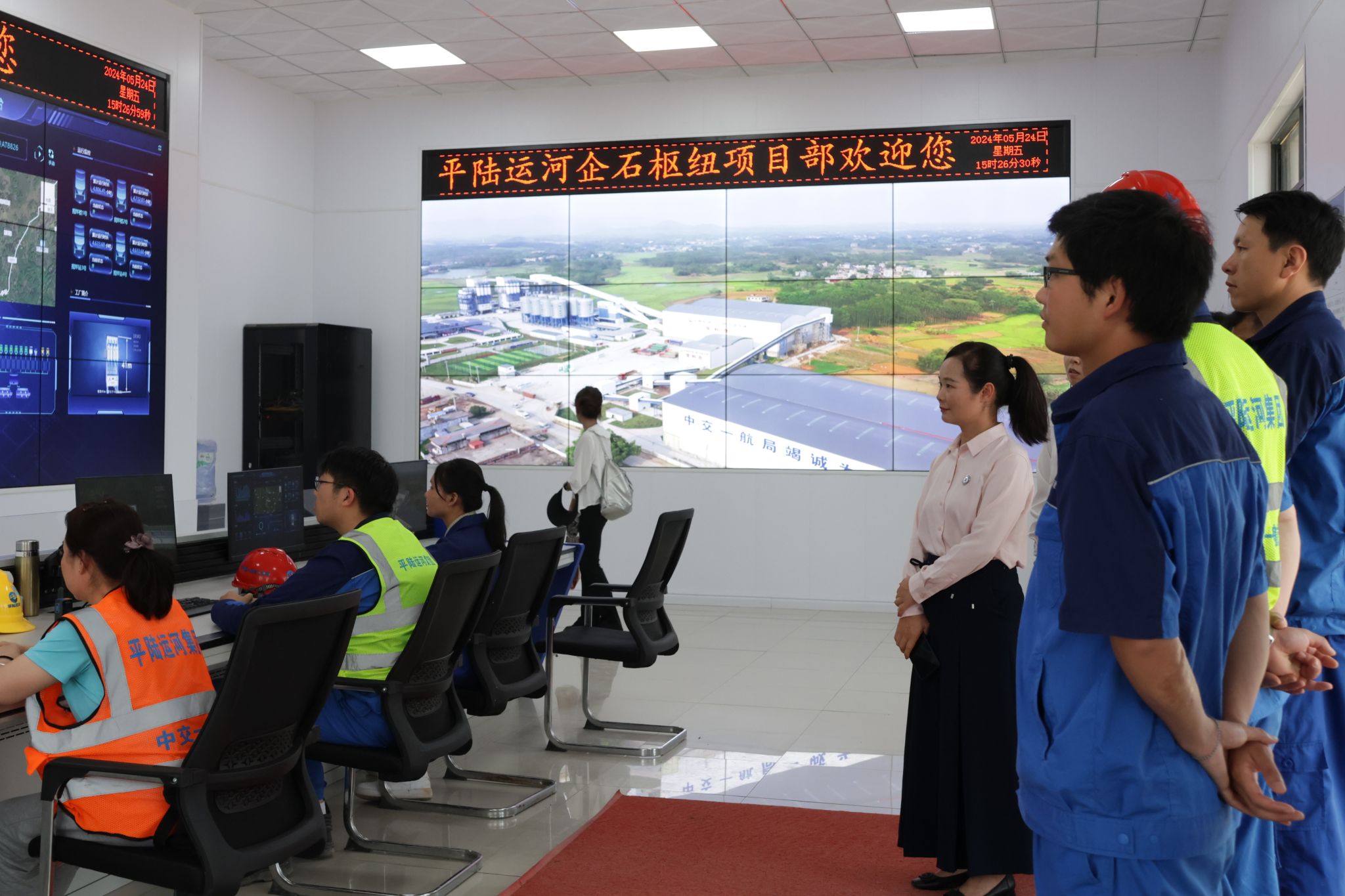考察交流期间,覃慧敏一行还在项目副总工邳建亚等人的带领下,参观了企石枢纽3号观测平台和智慧安全教育中心。