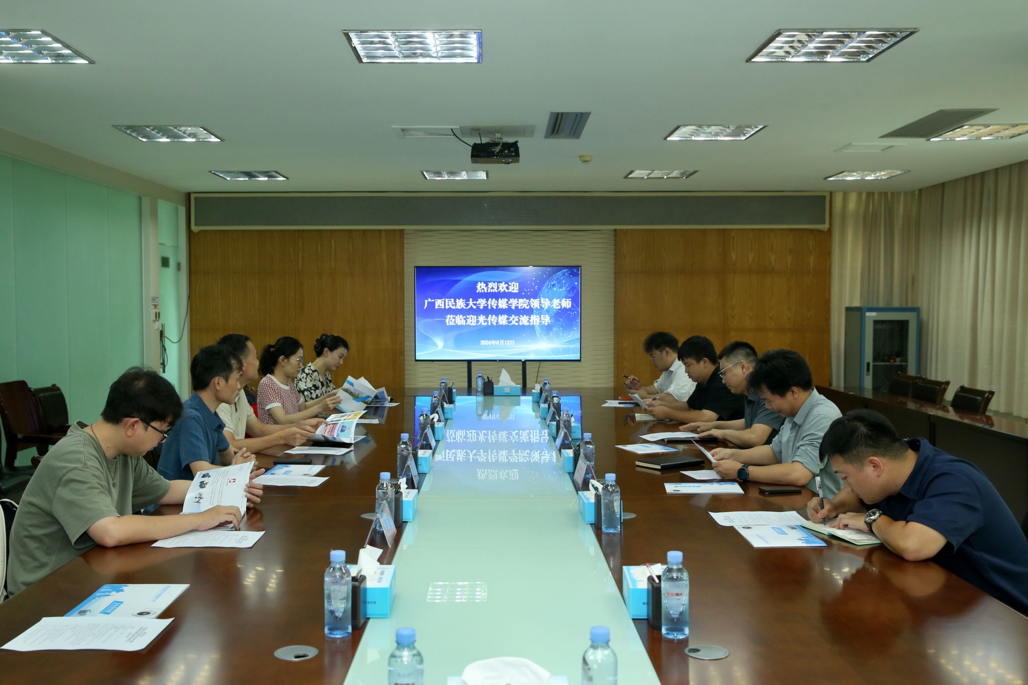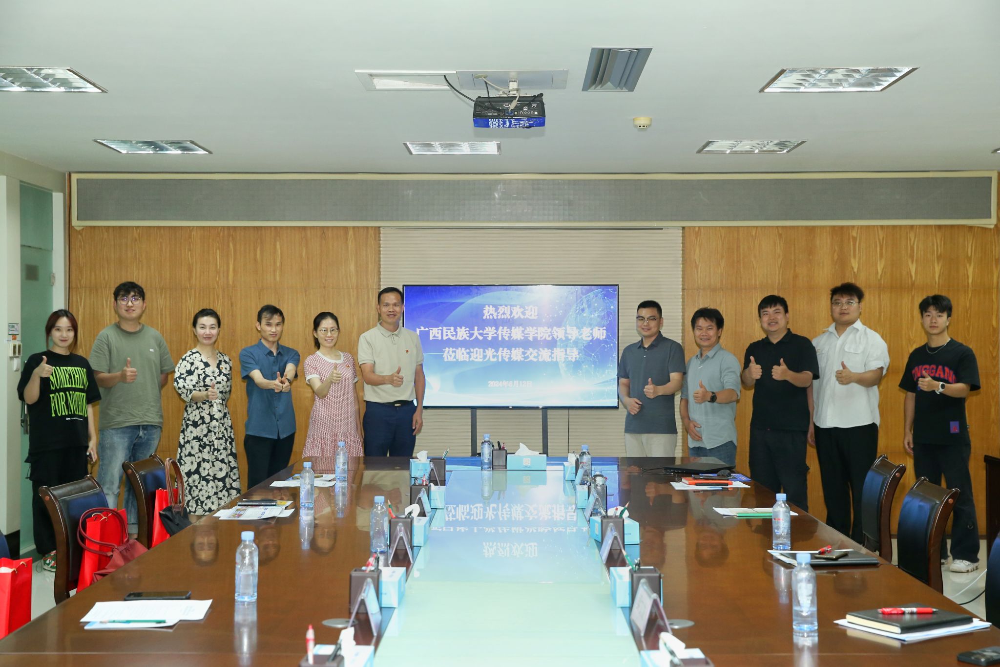 5月12日下午,我院党委书记陈就汉及师生代表一行7人来到广西迎光影视文化传媒有限公司访企拓岗、考察交流。广西迎光影视文化传媒有限公司总经理、我院2010级广播电视编导专业校友陈子豪及公司各部门主要负责人与到访师生座谈交流。座谈会由公司副总经理梁文龙主持。