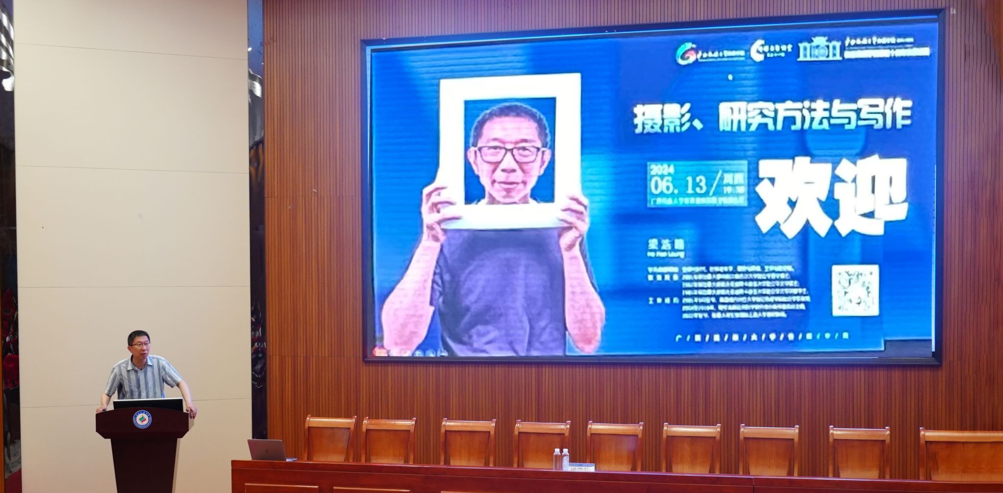 6月13日晚上,美国纽约州立大学奥尼昂塔分校社会学系教授梁浩瀚受邀到我院开展主题为“摄影、研究方法与写作”的讲座,预科教育学院书记覃锐钧等嘉宾及我院师生代表参加讲座,讲座由院长杨学明主持。