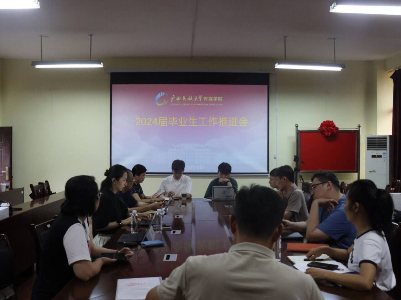 为落实2024届毕业生就业工作,提高我院总体就业水平,6月18日,我院于明德楼343会议室再次召开就业工作推进会。党委书记陈就汉、党委副书记覃慧敏及各专业负责人、教研室主任、毕业班班主任与辅导员参加本次会议。