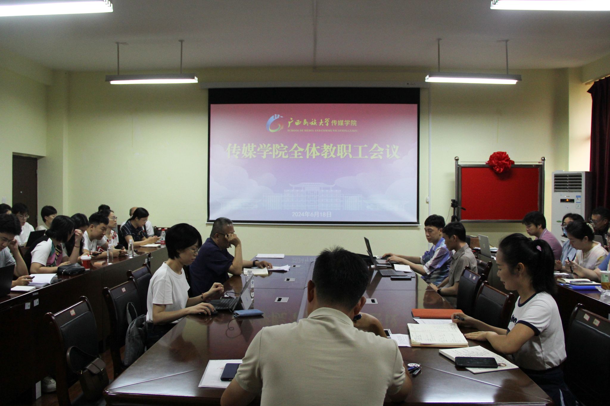 6月18日下午,我院在明德楼343会议室召开全体教职工会议,布置期末工作。学院党委书记陈就汉、党委副书记覃慧敏,全体教职工参加会议。陈就汉主持会议。