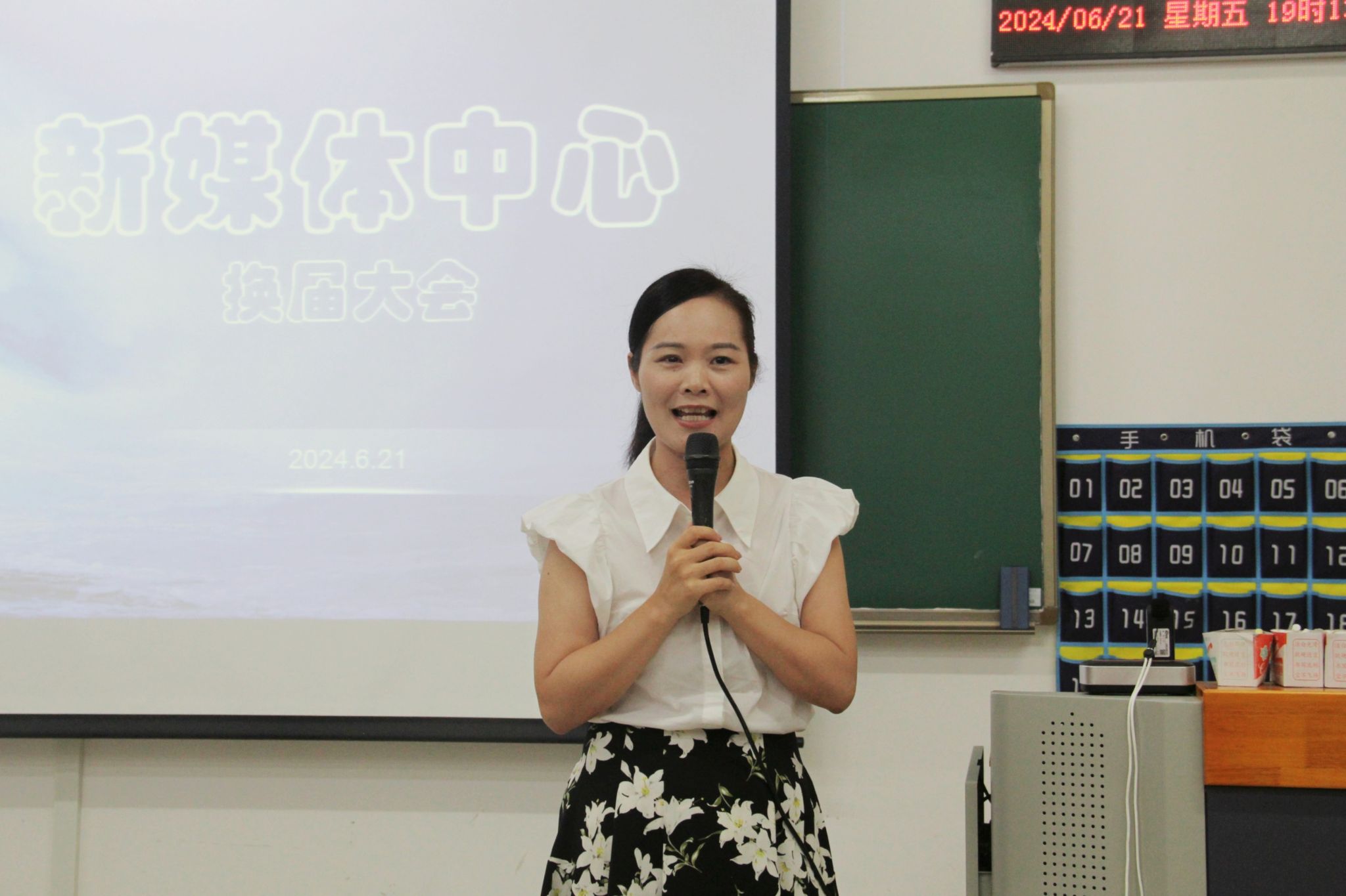 会议伊始,钱芷涵对2023-2024学年新媒体中心开展的各项活动、所获成绩和改革创新工作进行总结,表示后续将继续推动新媒体中心的改革发展,给予中心成员更多的展现空间,提升实践能力,促进大家共同进步,共创新媒体中心的新辉煌。