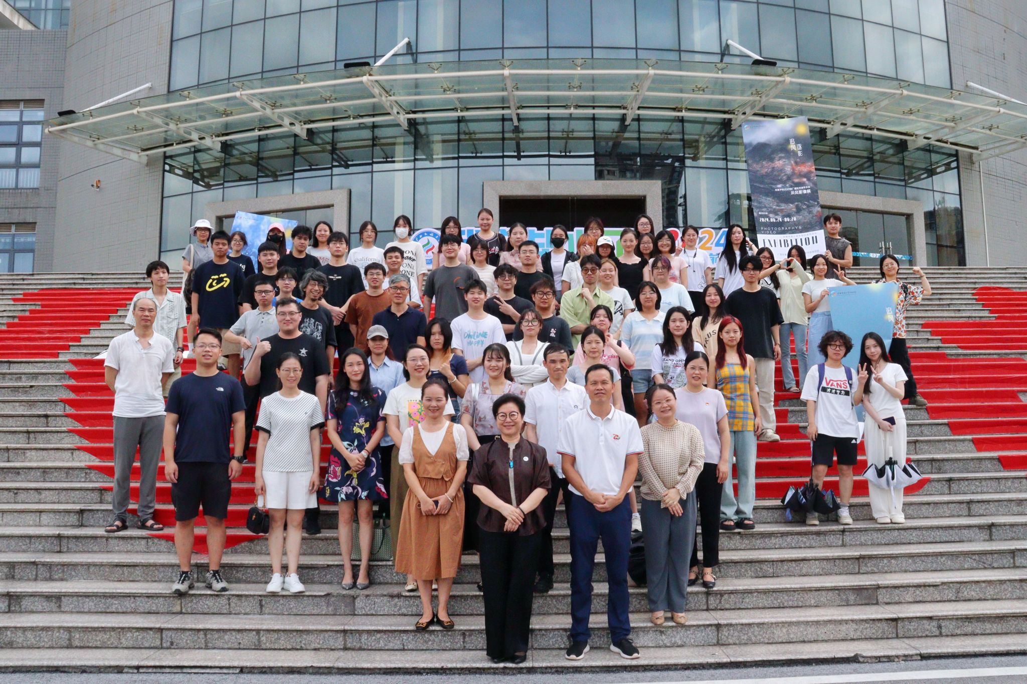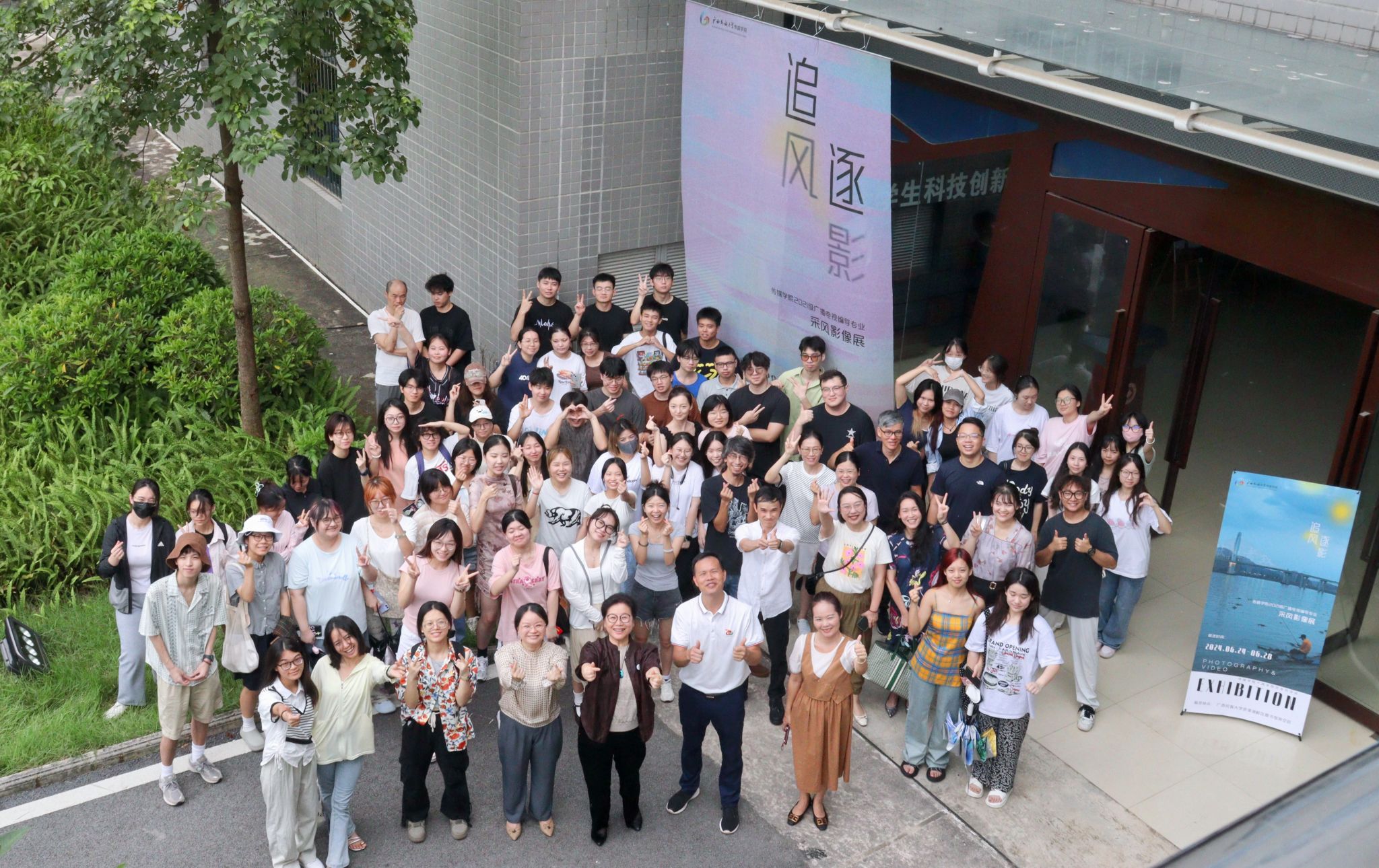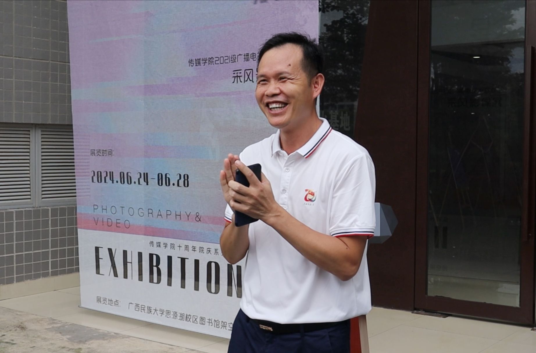 6月24日上午,2021级广播电视编导专业“追风逐影”采风影像展于思源湖校区图书馆架空层顺利开展。学院党委书记陈就汉、院长杨学明、党委副书记覃慧敏、副院长吴兰、编导教研室主任万益杰出席仪式。开幕式由2021级编导1班学习委员成子涵主持,编导教研室在校专任教师、2021级全体同学参加开幕式。
