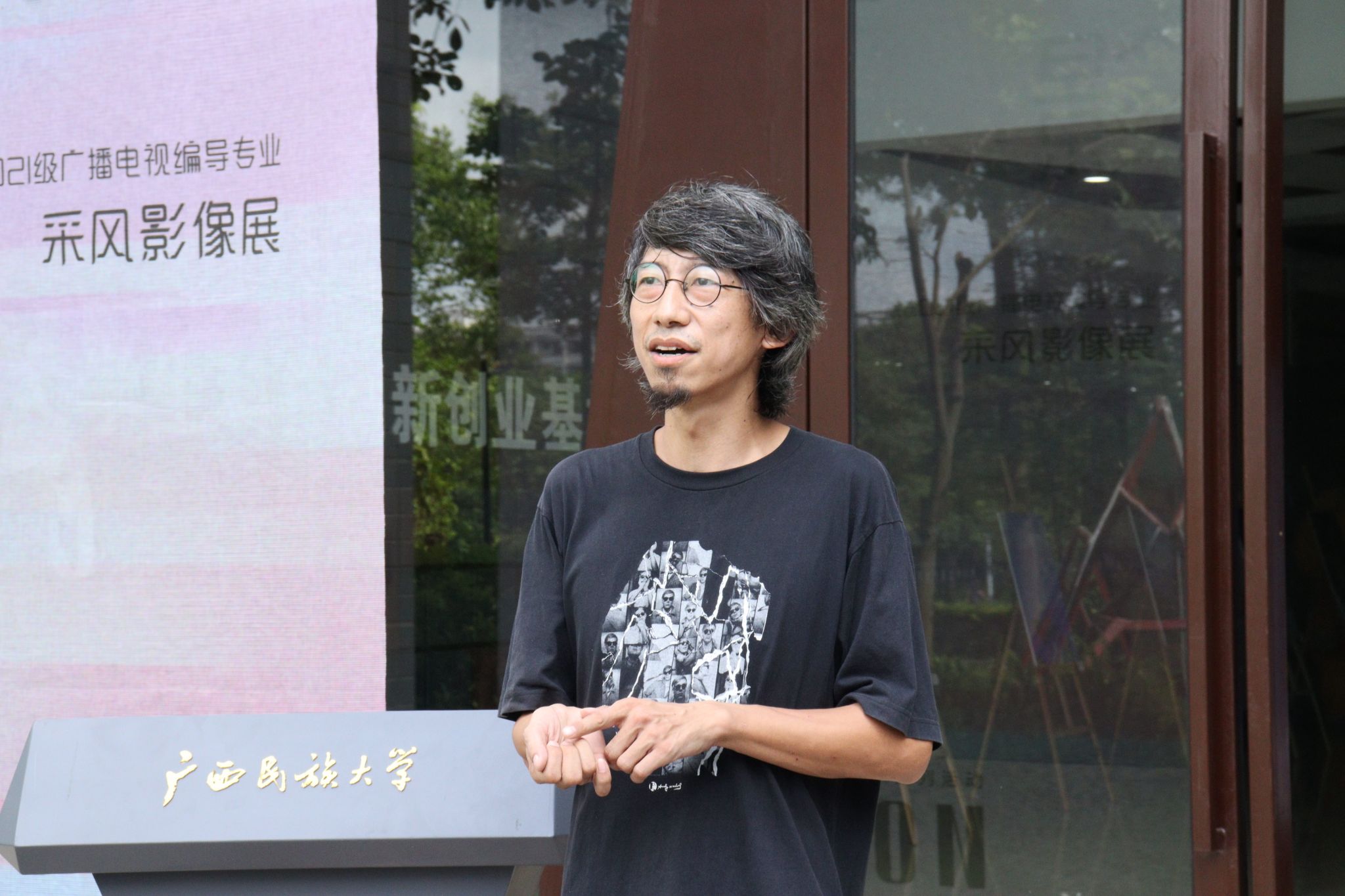 陈就汉宣布2021级广播电视编导专业“追风逐影”采风影像展正式开幕。