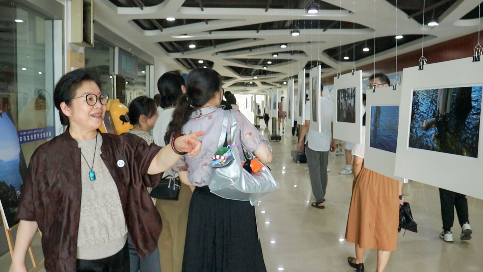 开幕式后,到场师生合影留念并来到展厅内观展、讨论,现场师生极具“松弛感”。