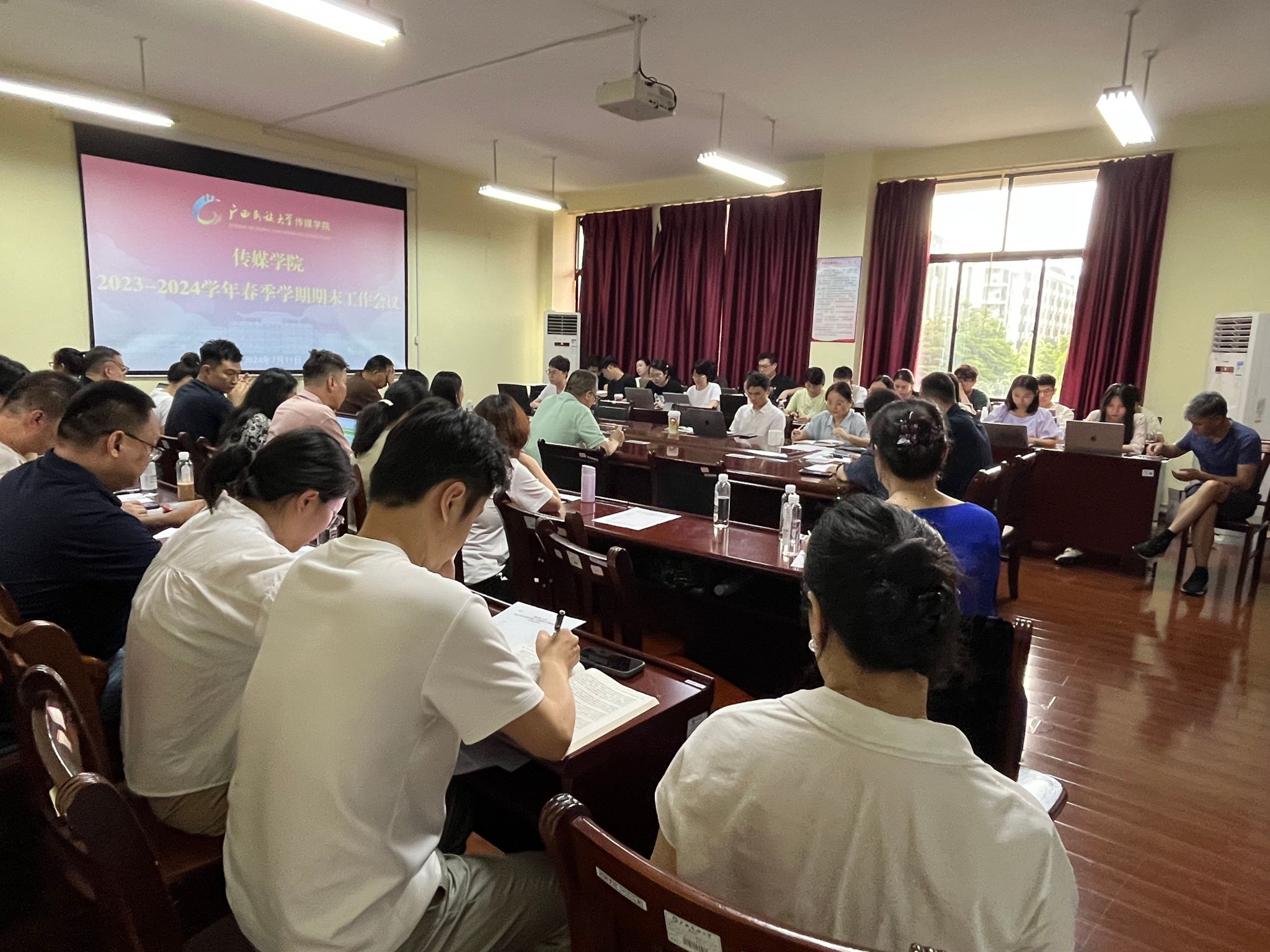 7月11日下午,bw必威西汉姆联2023-2024学年春季学期期末工作会议在明德楼343会议室召开。学院领导班子、全体教职工参加会议。党委书记陈就汉主持会议。