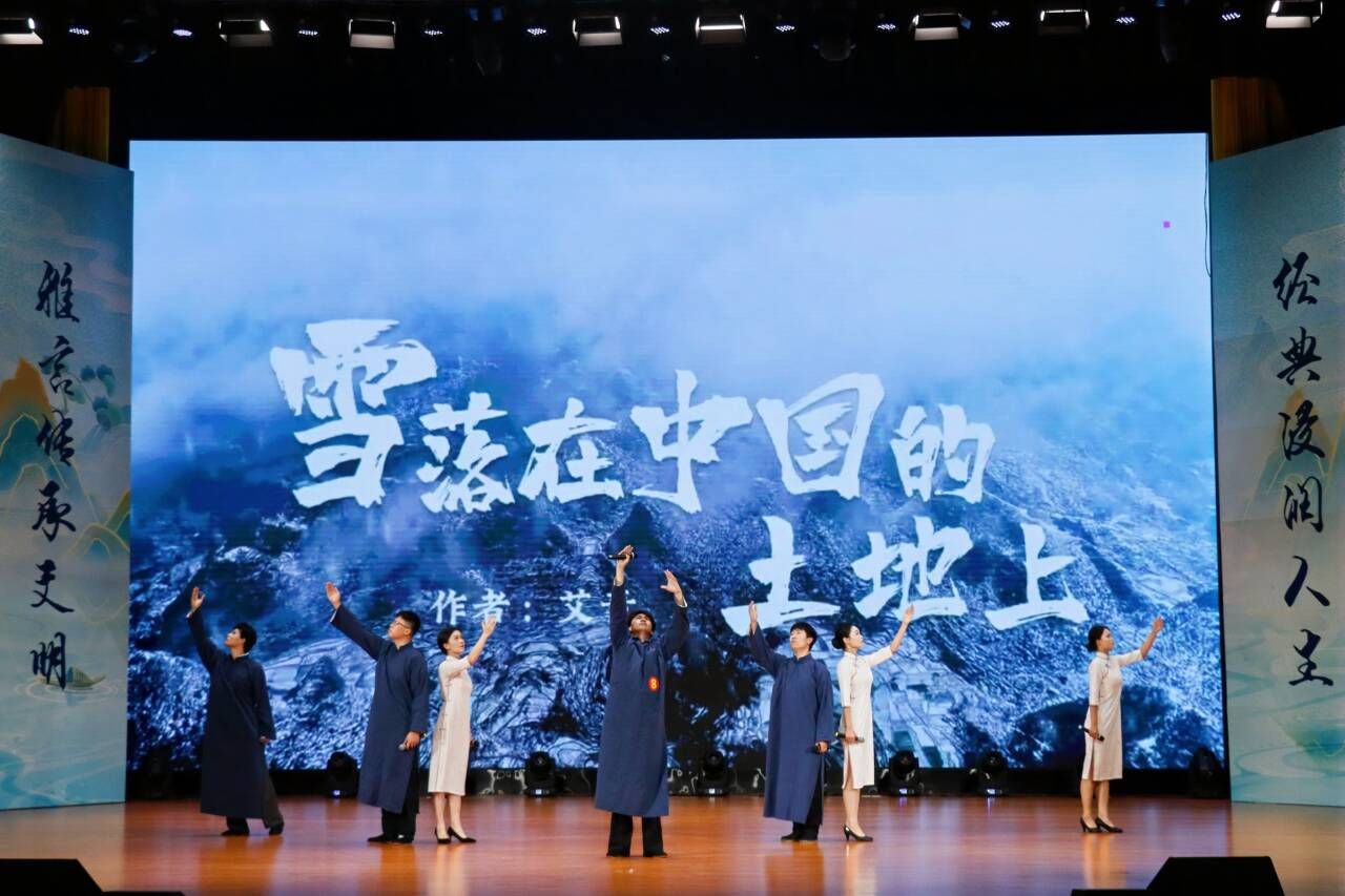 (南宁师范大学刘艳、赵传谞、欧阳俊威、秦倩倩、董文渊、兰春意、赵嘉兴朗诵《雪落在中国的土地上》)
