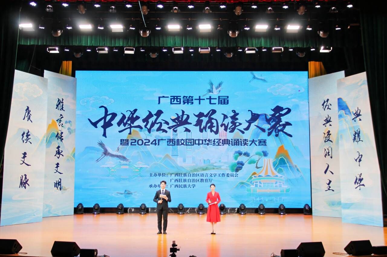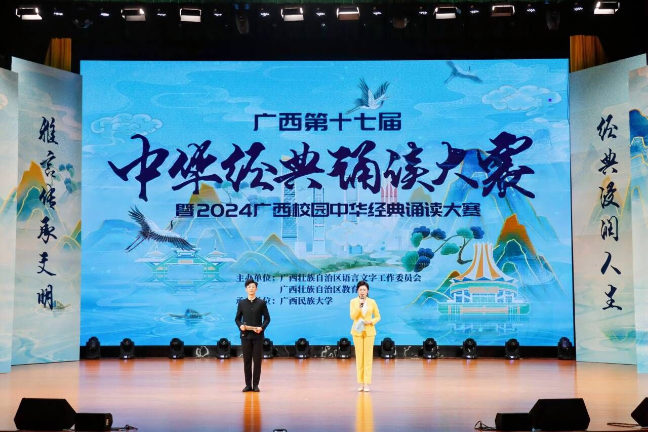 7月13日,广西第十七届中华经典诵读大赛暨2024广西校园中华经典诵读大赛现场总决赛在广西民族大学思源湖校区拉开序幕。