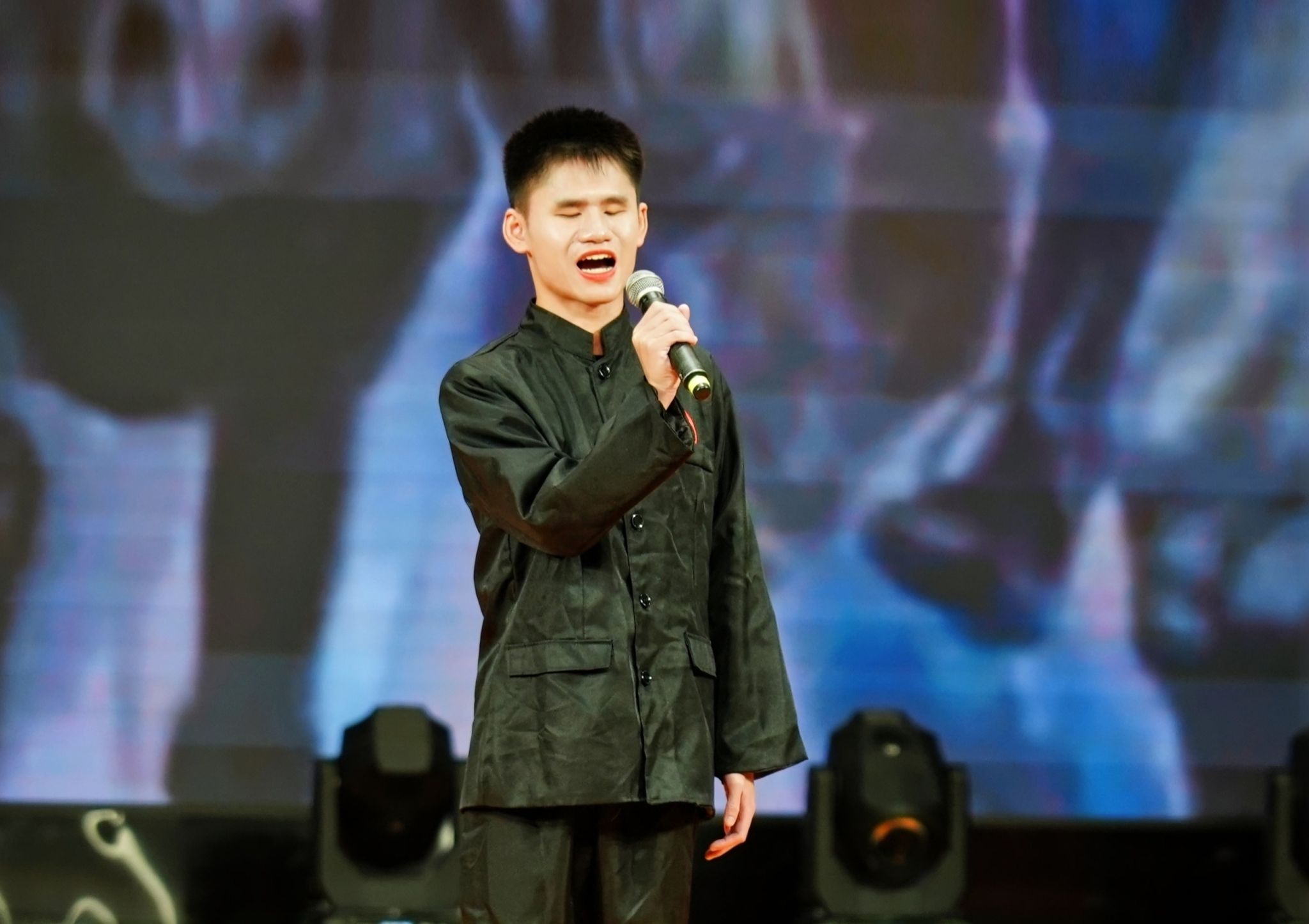 韦文宝,先天性失明,目前就读于柳州市特殊教育学校,他也是现场总决赛唯一一位特殊教育选手。