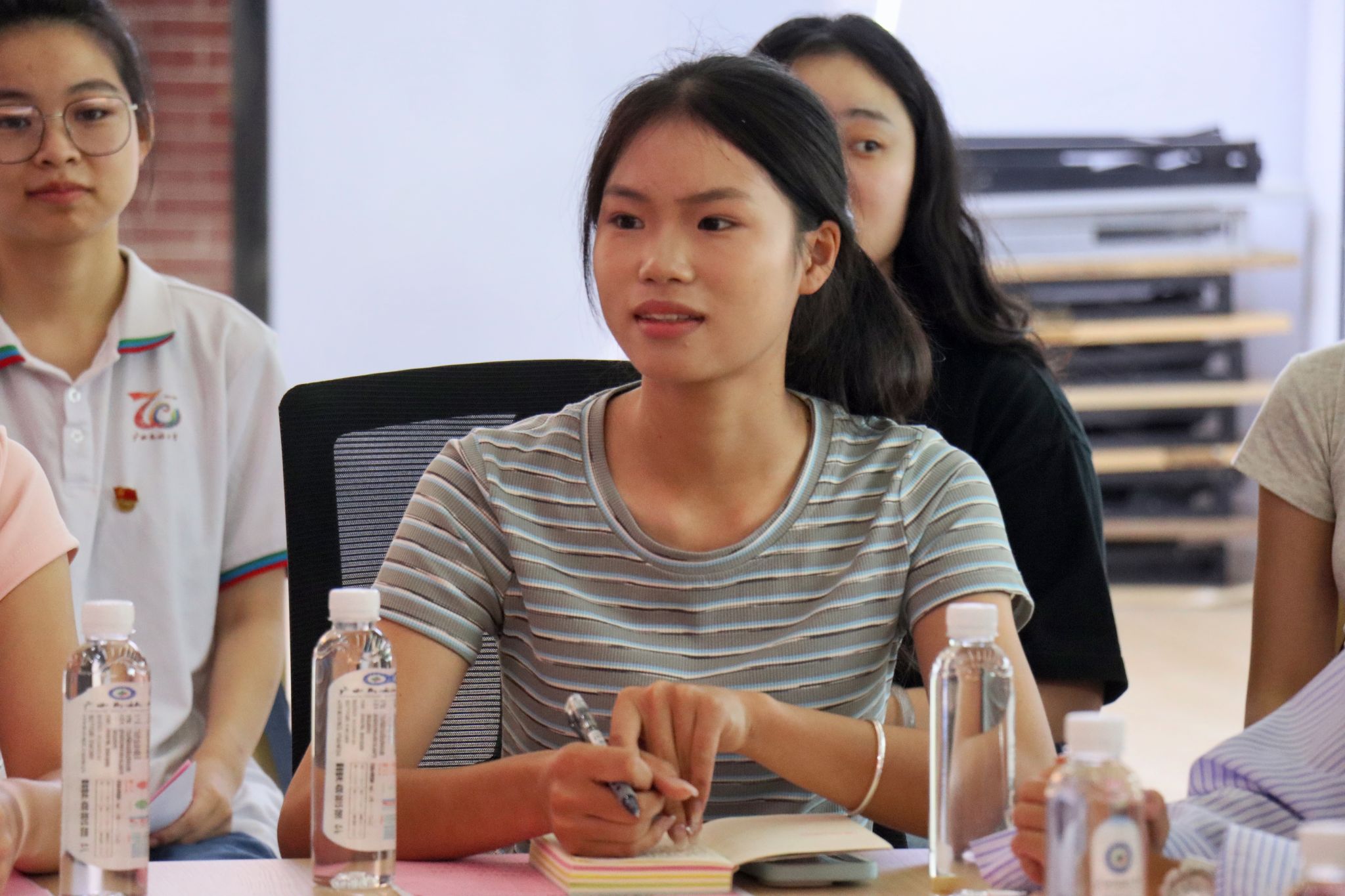 座谈会上,学生代表就学习目标、宿舍环境、食堂饮食、未来就业等方面提出问题。与会领导和老师认真听取并记录学生代表的发言,陈就汉和杨学明现场对学生反映的问题进行回复并提出建议。