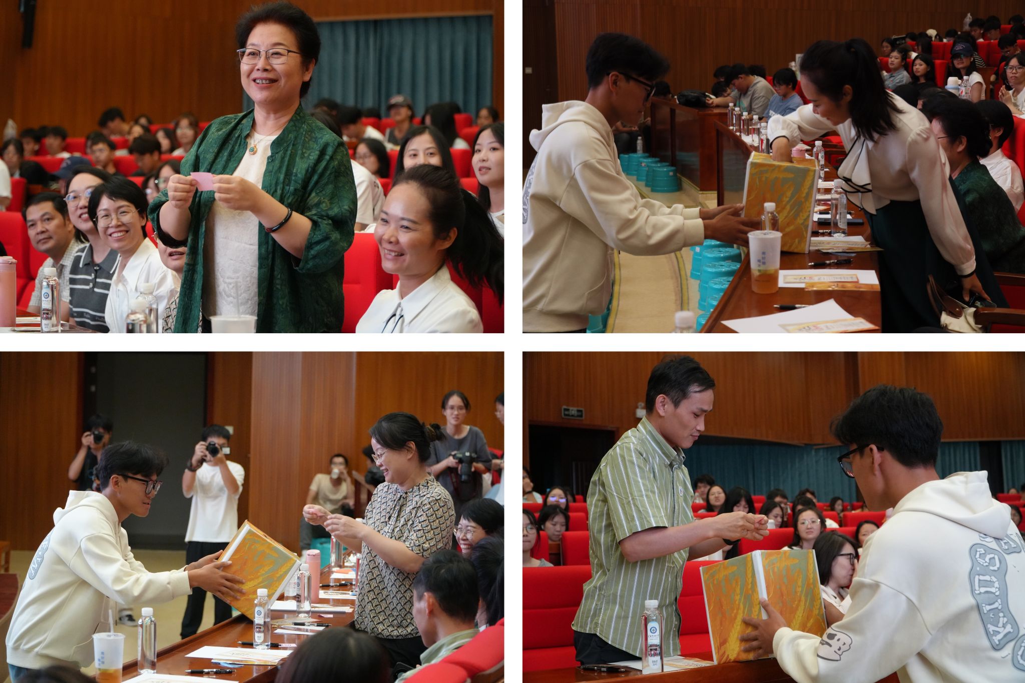 在分享交流环节,参会学生围绕如何准备大广赛、如何进行高效时间管理、如何申请实习机会提升自身技能、如何开始志愿活动等方面提出问题,学生代表们耐心回答并给出建议;在抽奖互动环节,被老师抽中的新生们分享自己参加本次活动的心得与感悟。2024级播音与主持艺术专业1班的肖浩然说道:“参加这次沙龙活动,能和学长学姐进行面对面交流,感觉收获满满。”