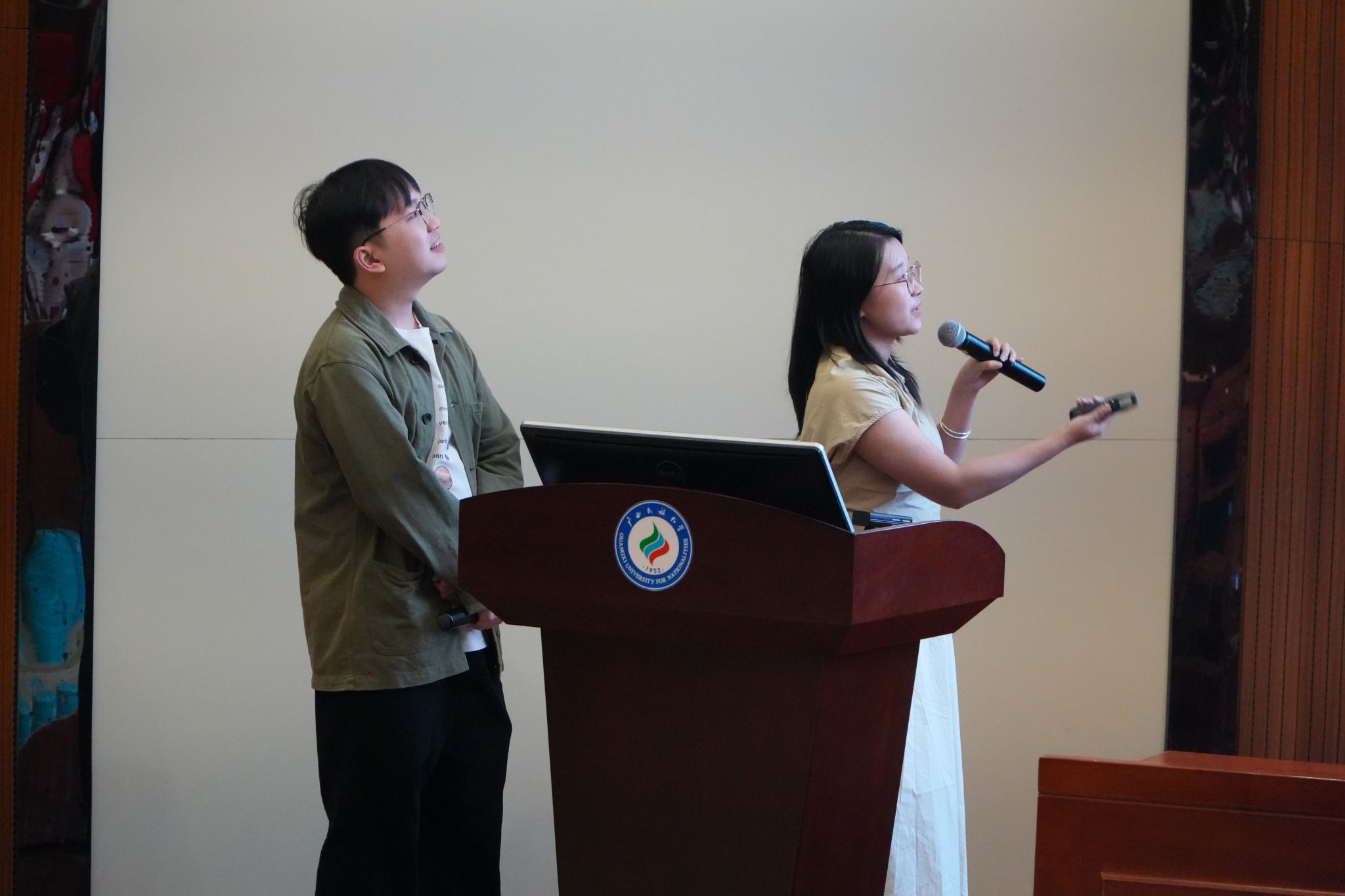 2024年第16届全国大学生广告艺术大赛策划案金奖团队代表何一平与陈鸿明分享团队的参赛经历,在比赛时将大广赛赛题与自身生活结合并利用已有的AI工具,借鉴总结先前的经验,提出策划案作品《梦想快车,与wo同行》最终取得优异成绩。何一平说:“大家要有一个奋斗目标,这样才能有动力,才会有结果。”同时,她也运用自身经历,强调团队协作的重要性。
