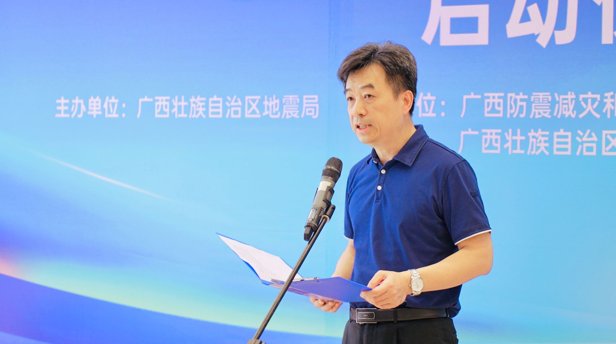 (广西地震局党组成员、副局长谢东致辞)