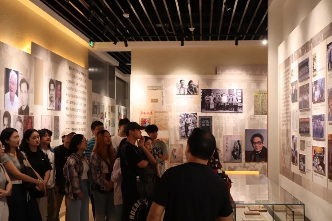 师生们首先来到一楼的广西现代文学馆,这里汇聚并展示了近五十年来广西地区杰出作家的文学成就与生平轨迹,以及广西出版业的辉煌篇章。一进门,一面由广西现当代知名作家及其作品交织而成的“壮锦”墙映入眼帘,瞬间将众人带入了一个文学与艺术融合的世界。展厅内,师生们仔细端详着广西重要文学事件的历史照片、作家手稿、书法作品、文学奖杯以及根据文学作品创作的艺术展品。在参观过程中,我校文学影视创作中心的张亮华老师向师生们详细介绍了广西文学的发展历程和重要成就。他提到,广西文学自五四新文化运动时期起便蓬勃发展,经历了抗日战争时期的桂林抗战文化城现象,再到新中国成立后的黄金时期,涌现出了一大批在全国乃至世界范围内具有影响力的作家和作品。张亮华老师特别强调了广西作家在民族文学和地域文学创作方面的独特贡献,他们的作品不仅反映了广西各民族的生活状态和精神风貌,还为中国文学宝库增添了宝贵财富。