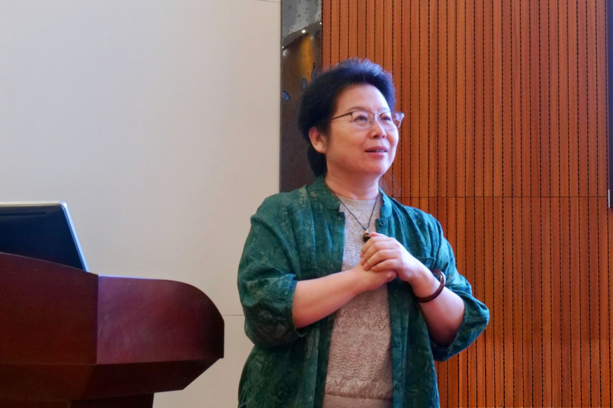 (师生们认真听讲座)