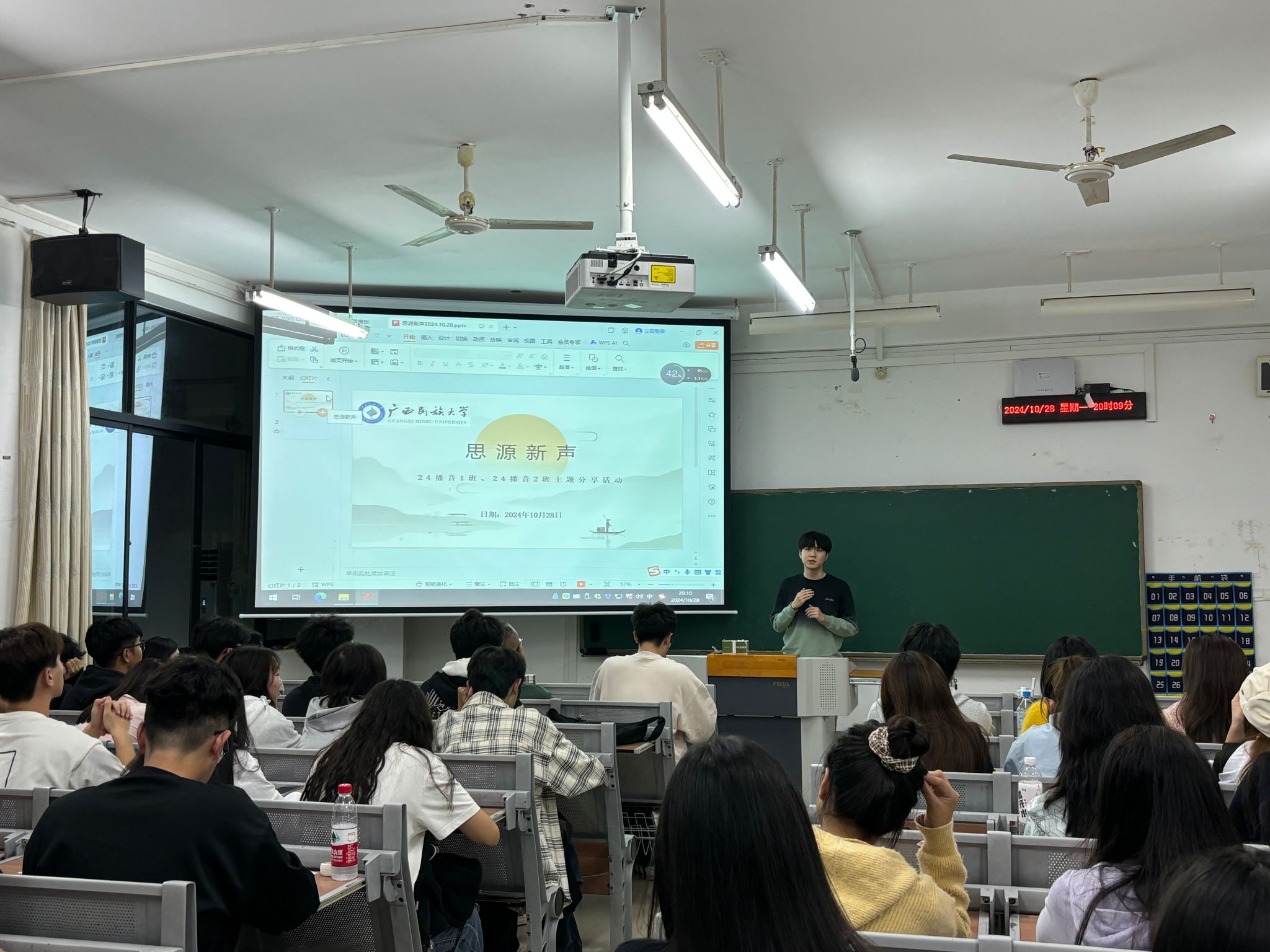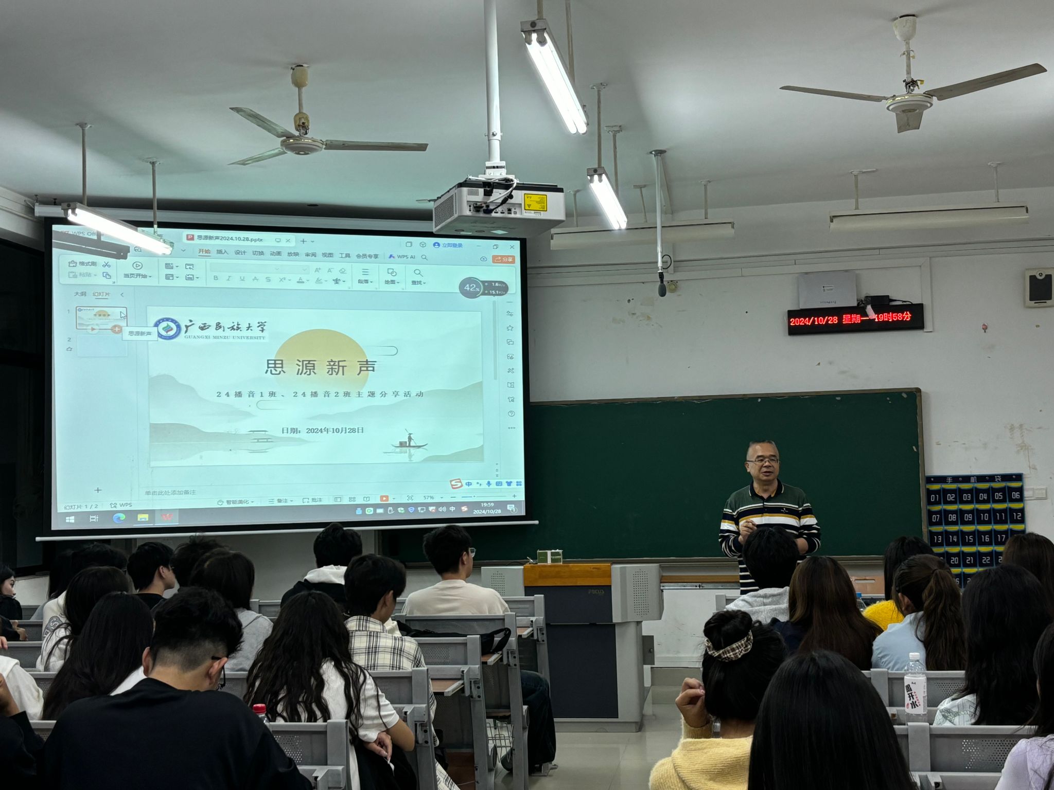 10月28日晚,第二期“思源新声”主题经验分享活动在明德楼315教室成功举办。本次活动邀请了荣获第五届中华经典诵写讲大赛“诵读中国”经典诵读比赛一等奖的2021级播音与主持艺术专业学生王乐平、饶杰文、毛嘉欣及胡雅童,与2024级新生分享参赛经验。活动由2024级播音与主持艺术专业班主任黄春平老师主持。