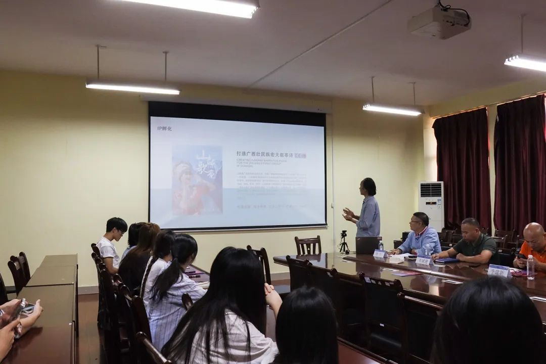 会上,广西人易圣文化有限公司行政总监黄鹤龄围绕业务板块分布、产业运营模式、项目内容和IP孵化等方面简要介绍公司发展情况。