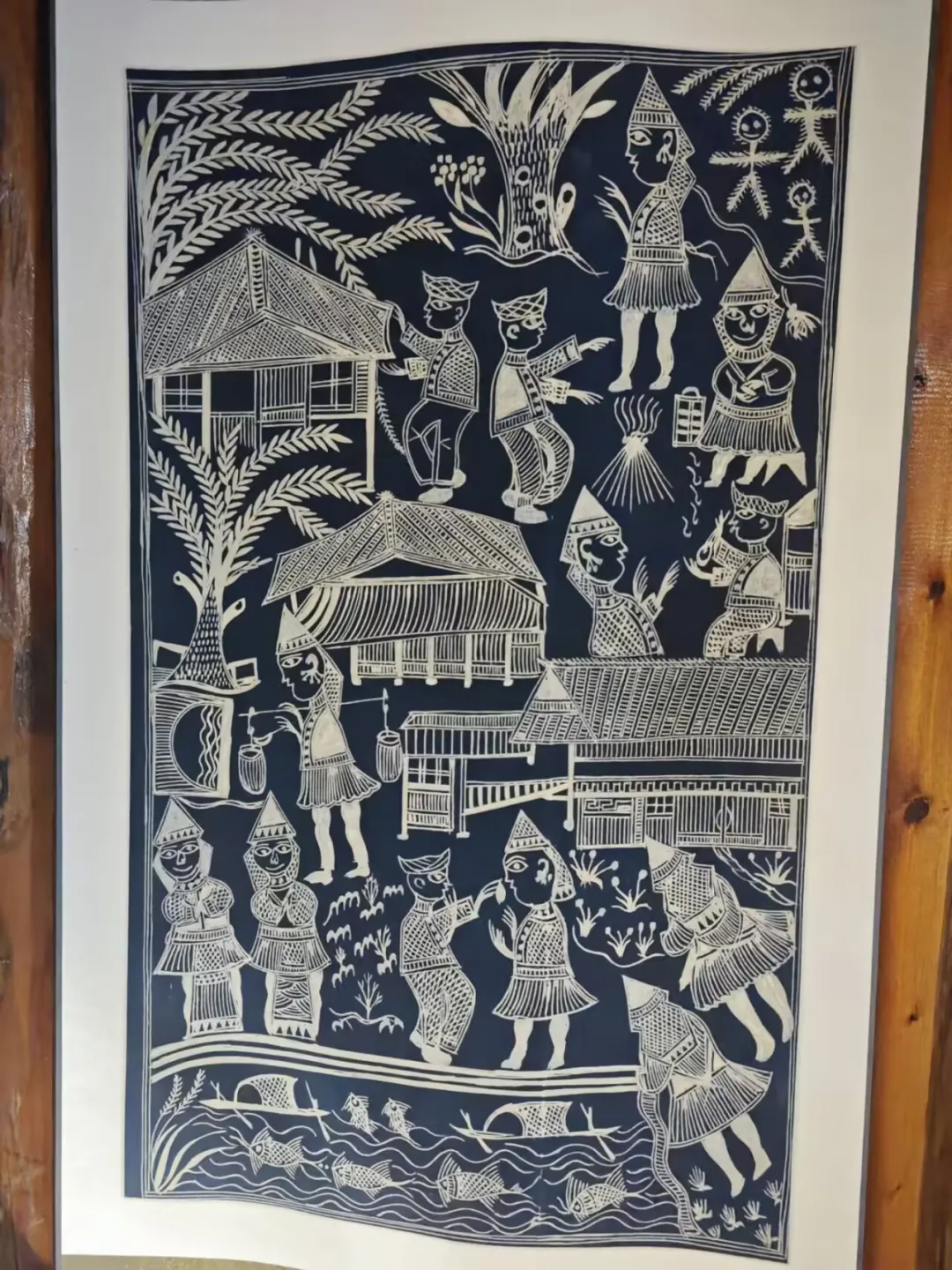 11月16日,团队前往融水苗族自治县梦鸣苗寨,参观了蜡染作品展览。展品展现了蜡染工艺的民族智慧与艺术价值,团队通过收集素材,计划用于丰富“蜡韵艺创”视频号的内容,进一步传播非遗文化。