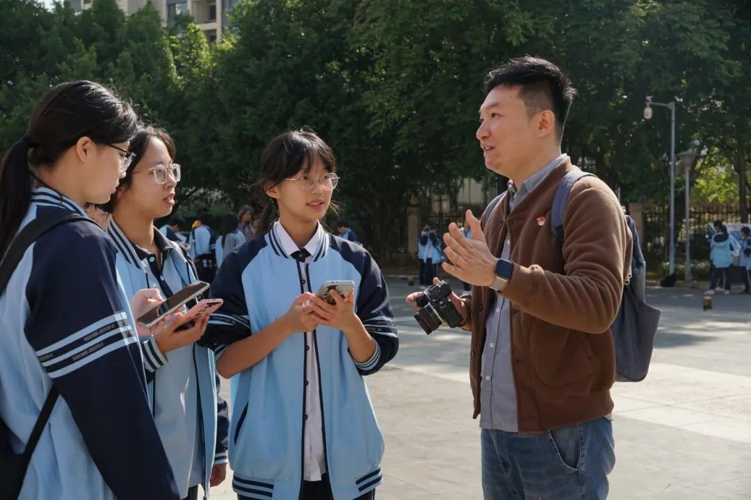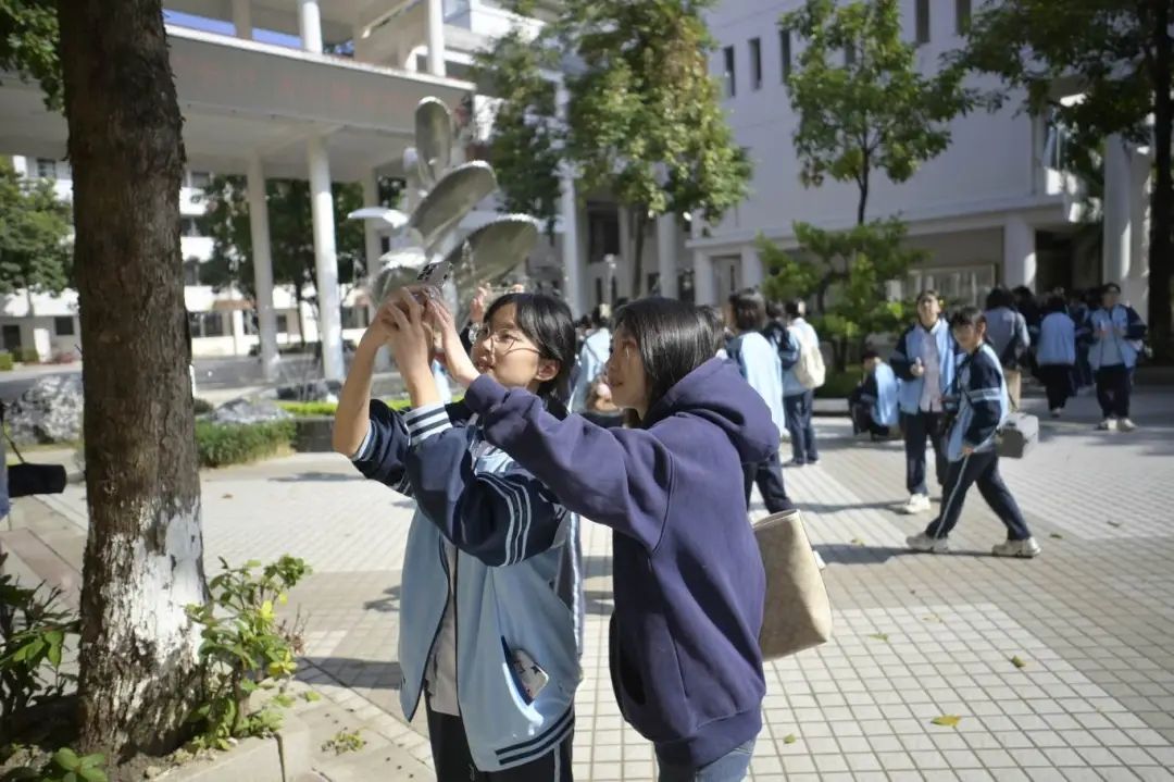 随后,在磨聪、唐寅两位老师的带领下,同学们满怀激情地投入到校园拍摄实践中。我院师生与八中的同学们探讨学习、交流心得,分享摄影知识和拍摄技巧。在校园的每一个角落,都留下了他们忙碌而快乐的身影,用镜头捕捉着八中的美丽风景。