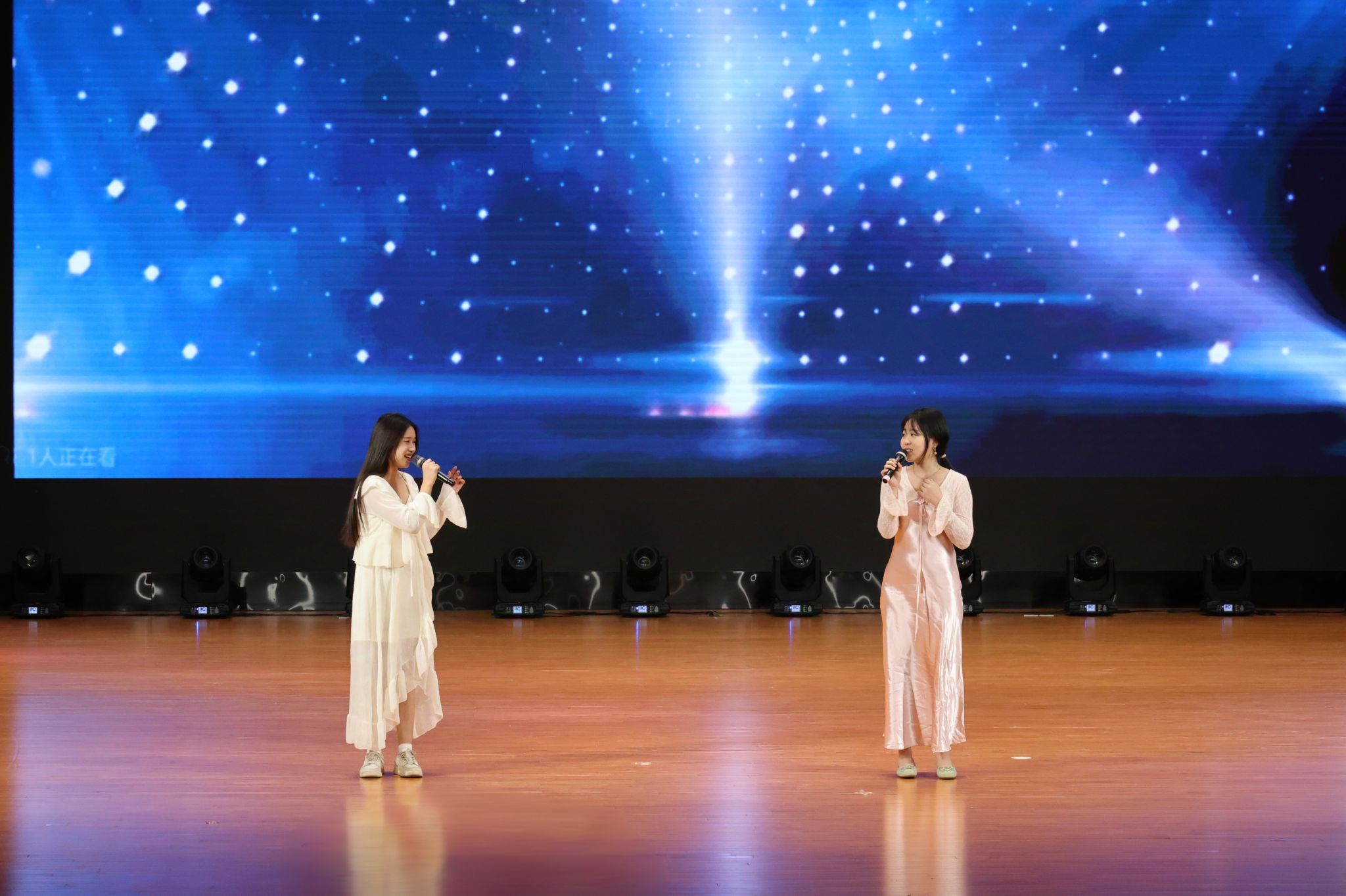 (2023级广播电视编导专业2班陈格宜、唐小欣带来合唱《下一站天后》)