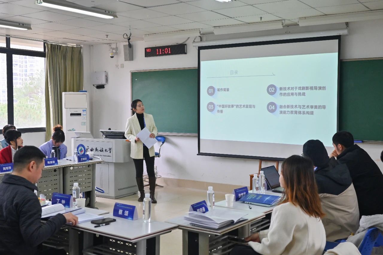 在以“少数民族题材影视剧创作研究”为研讨主题的会场中,西安外国语大学艺术学院教授徐雅宁以《危机反思与家园重构:新世纪以来少数民族题材电影的生态美学趋向》为题,通过《狼图腾》等影片揭示生态危机与精神迷茫,批判人类中心主义并倡导构建生态共同体,聚焦少数民族“原生态”,传达生态人文关怀与重建家园期望。岭南师范学院基础教育学院教授邴波以《浅论“援疆精神”的影像建构》为题,剖析了“援疆精神”概念内涵及相关精神联系,提出通过家国同构叙事与人物形象塑造的建构途径,阐述了其在铸牢中华民族共同体意识、开展爱国主义教育等方面的价值。安庆师范大学bw必威西汉姆联教授卓雅、贺州学院文化与bw必威西汉姆联一级导演韦庆林、塔里木大学人文学院副教授牛绿林等学者也分享了自己的研究。