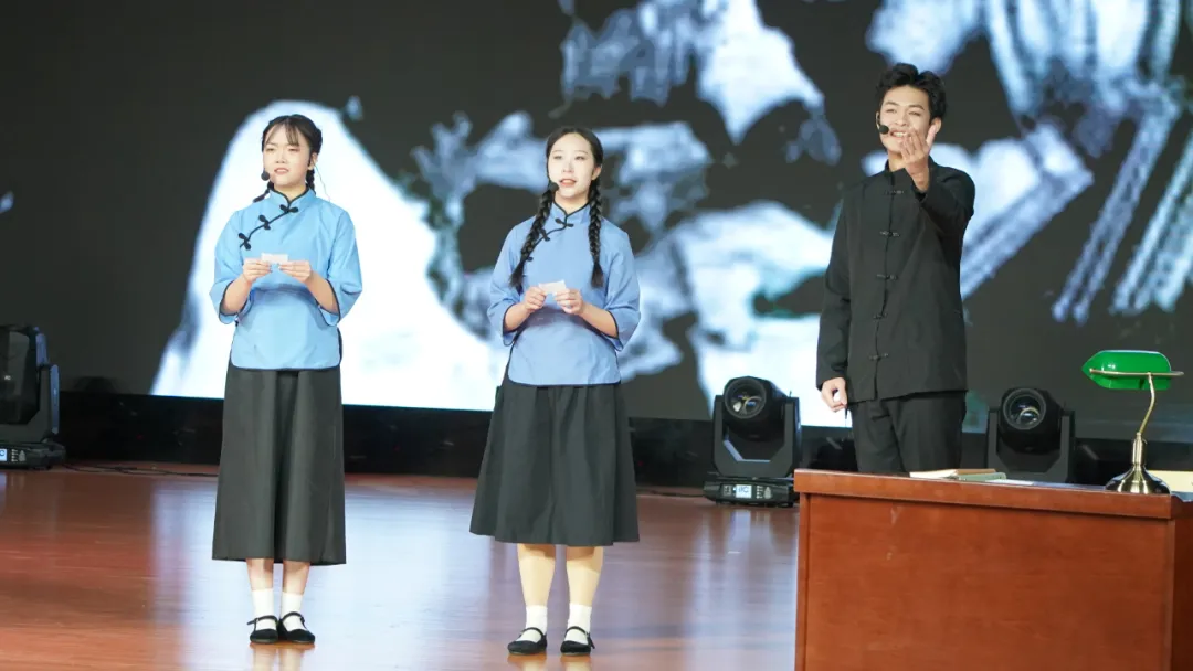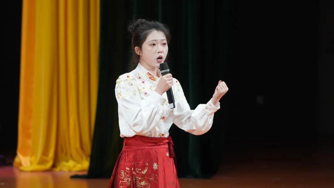 活动最后,由教工第二党支部组织排演的特别节目《青春的礼赞》精彩上演。该节目表演者是广西民族大学附属小学的徐稚善小朋友、南宁市第八中学的韦亦恬以及我院播音与主持艺术专业的莫平凡等同学。大中小学生跨越学段,共同表达了对青春最真挚的理解与颂扬。“今天我们许下青春的誓言,将堂堂正正的中国之声,献给人民,献给祖国。”伴随着全体讲述人铿锵有力的齐声诵读,活动在感动中圆满收官。