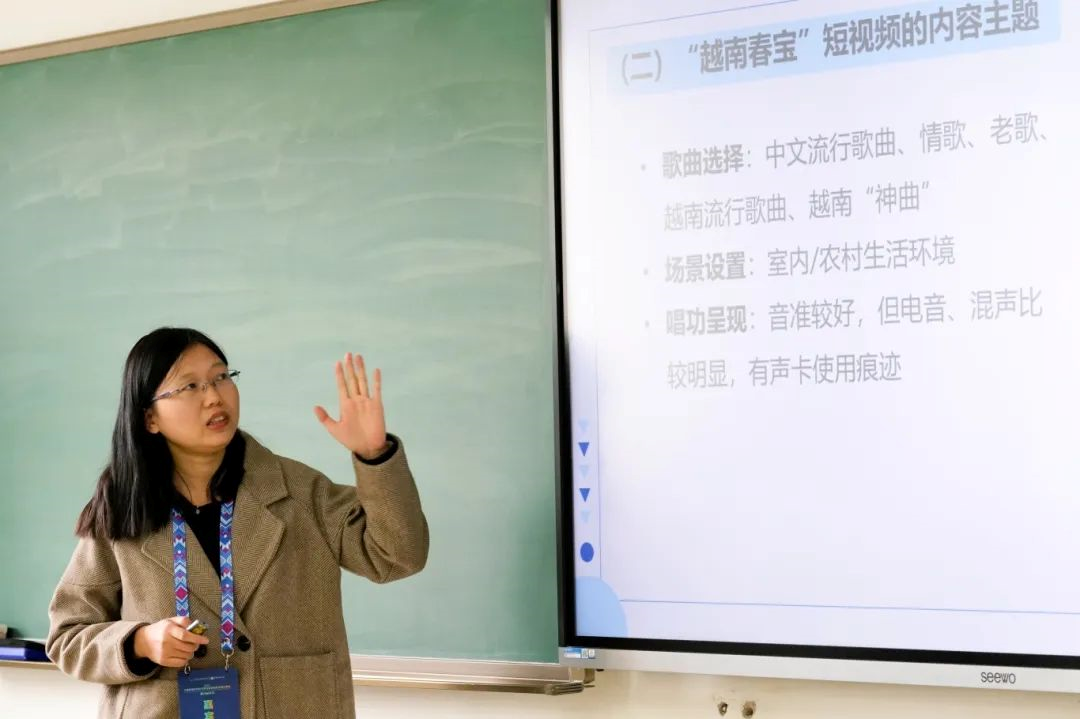 广东财经大学讲师蔡雨婷与《南国早报》记者潘晓荷,以《在中国做网红:拟剧论视域下抖音博主“越南春宝”的自我呈现研究》为题,认为越南女性抖音博主“越南春宝”在中国通过展示自我才艺、中越文化及越南农村生活,塑造积极形象,打破刻板印象,积极创作传递正能量,形成良好观众互动,同时指出“越南春宝”作为中越交流平台,满足中国公众信息需求,促进中外交流,但也存在创作局限。