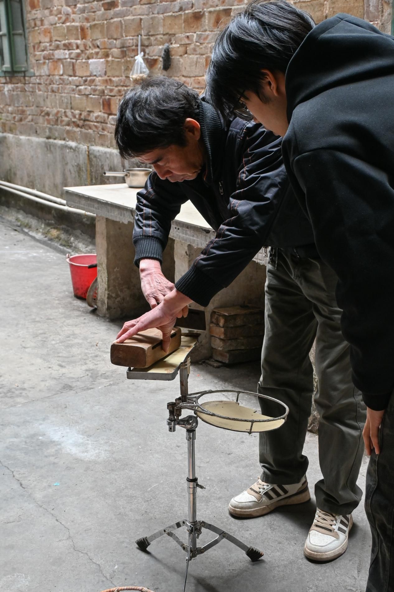 在采访中,张耀东还向大学生们介绍了广西八音的演奏方式。他拿出了八音的乐器为大家介绍道,八音的乐队通常由六到八人组成,根据演出时的活动、场合和音乐需求来确定乐器配置。演奏形式包括“小吹”和“大吹”两种,而演奏方式则有行奏和坐奏之分。行奏时,乐手们会边行边奏,常在婚礼、舞龙、舞狮等场合出现;坐奏时,乐手们则围坐在八仙桌旁演奏,多见于民间贺寿、红白喜事等场合。张耀东的演示让大学生们深刻感受到了广西八音的独特魅力。面对传承困境,张耀东等老艺人的坚守令人动容。然而,要真正实现文化的薪火相传,还需吸引更多年轻人的关注与参与。如何激发年轻一代对广西八音的兴趣,成为我们亟待解决的问题。