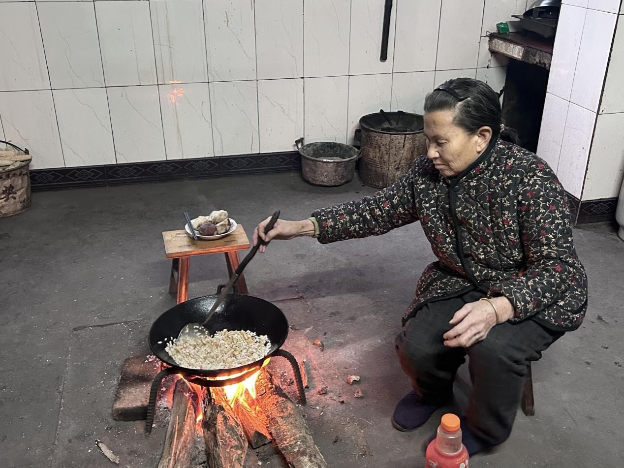 (翻炒油茶材料)