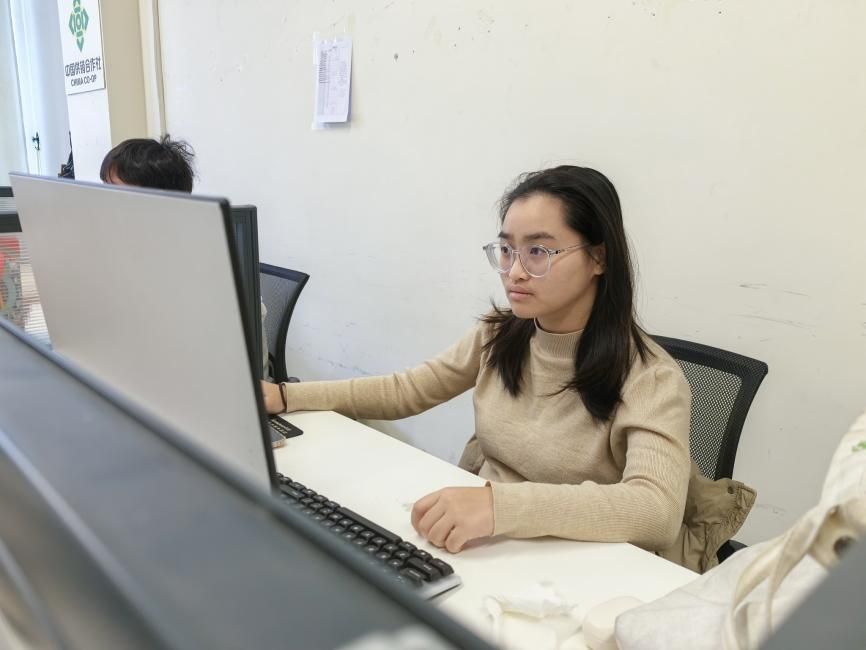 (传院学子梁宇进行剪辑工作)