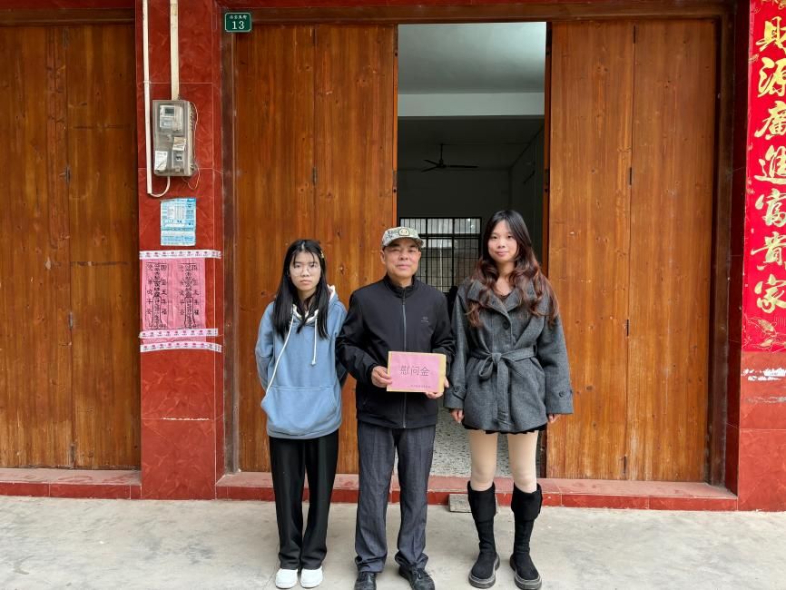 传院学子香淇美(右一)与其他志愿者下乡慰问退休职工