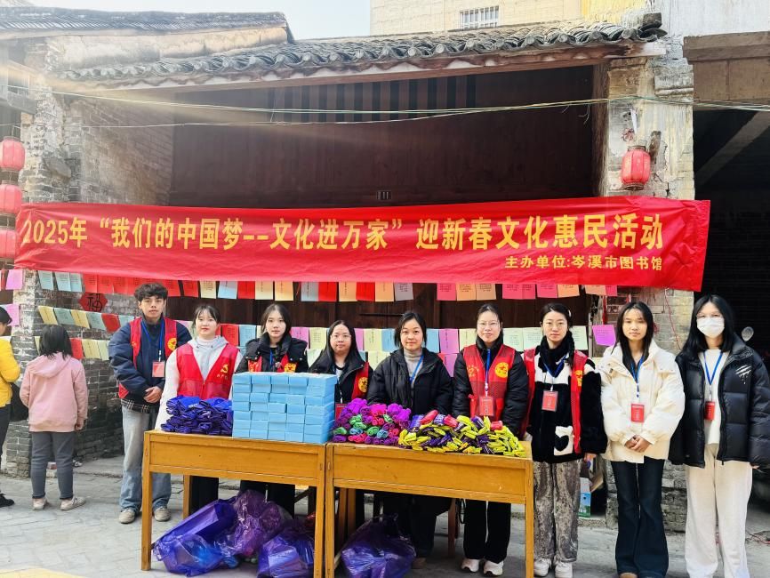 传院学子吴金荣(左四)在樟木古街猜灯谜活动中与全体工作人员合影