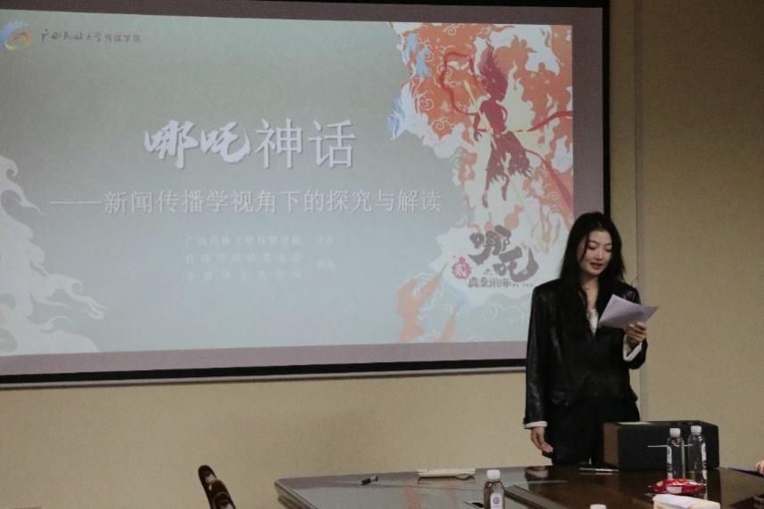 在此次沙龙中,主讲人24级新闻与传播专业硕士研究生孙良平结合哪吒神话当代化改编与传播的理论及实践,分享了传统文化的当代呈现和转译方法。主讲人24级新闻与传播专业硕士研究生兰婧迪对《哪吒》系列国漫电影的作品表现和发展脉络进行梳理,从多个角度讨论了哪吒神话现代化改编的传媒价值和社会影响。老师与同学们围绕哪吒与众人物的命运斗争、国际传播中的文化与技术竞争、中外电影的主角塑造与叙事逻辑等多个议题进行了热烈讨论。
