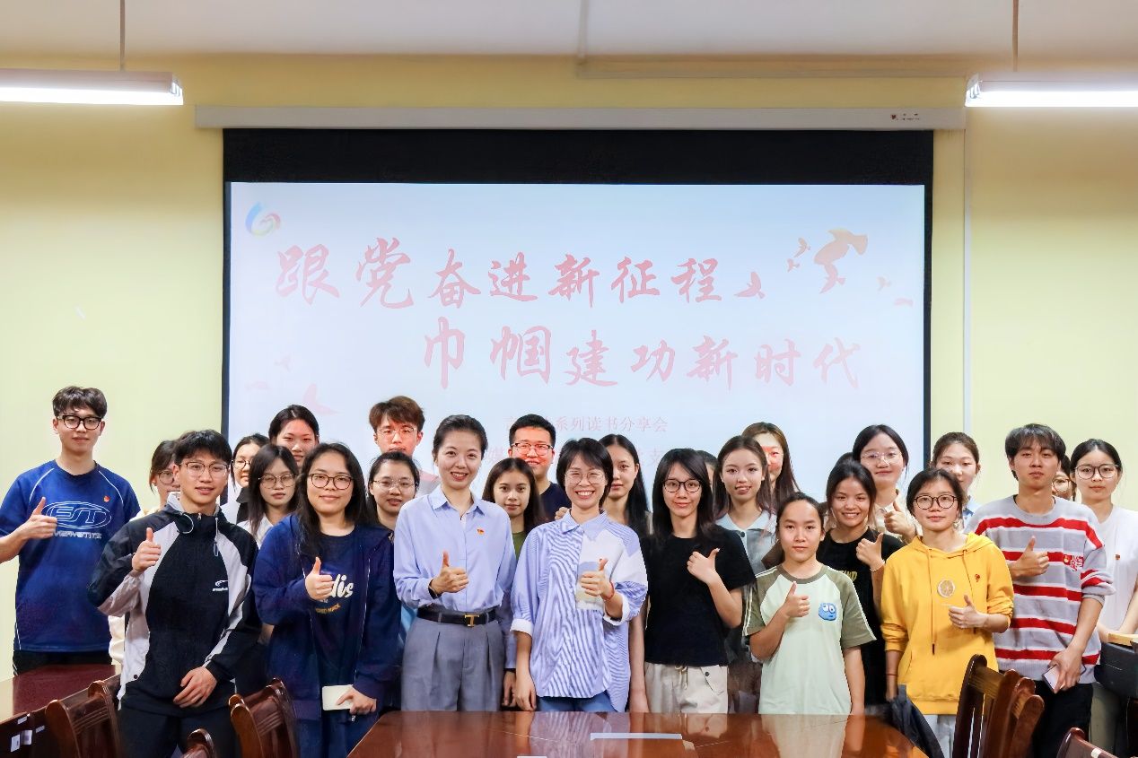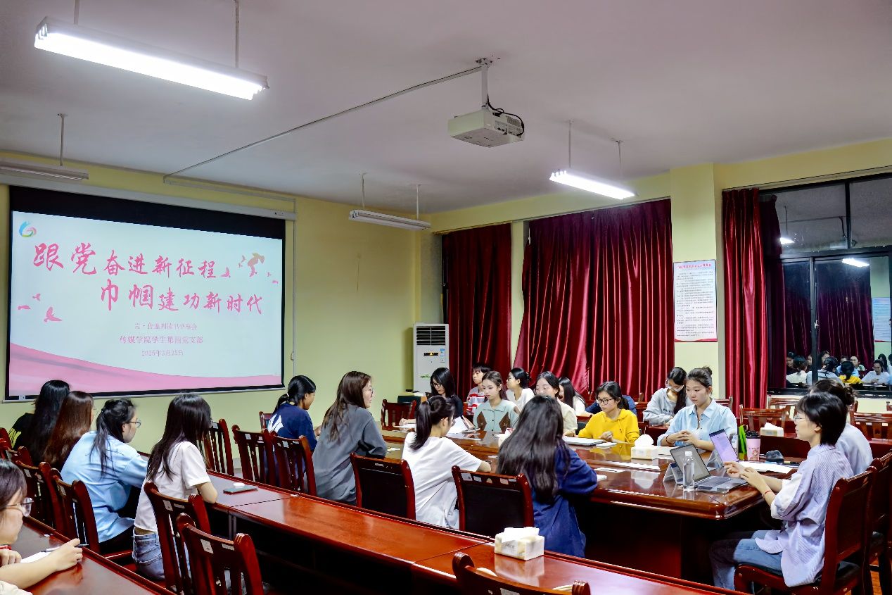 为弘扬新时代女性力量,传承巾帼建功精神。我院学生第四党支部于3月25日晚在明德楼343会议室举办“跟党奋进新征程 巾帼建功新时代”主题读书分享会。学院党委委员胡洁虹受邀出席,学生第四党支部书记覃雯主持,与学院各党支部学生党员代表、入党积极分子共同聚焦各行各业中的榜样女性,通过阅读她们的奋斗故事、分享巾帼精神,汲取自身奋进动力。