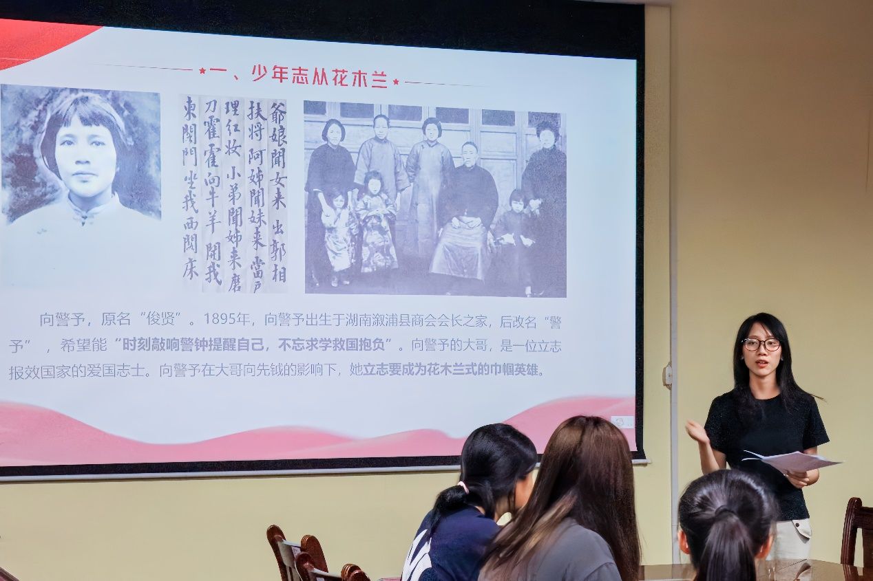分享会上,学生第四党支部覃茵英、赵姿如、马雪纯通过图文和视频相结合的形式进行分享,生动展现了革命先驱向警予、女飞行员徐枫灿和战地玫瑰王卓伦三位女性楷模的奋斗故事,并结合逆境突破、新闻职业素养等现实情景,具体阐释了巾帼精神的现实价值。在现场互动环节,党员们积极分享自身感悟,进一步深化对新时代女性奋斗精神的理解。