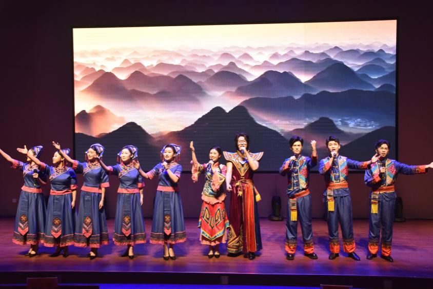 “《桂林山水歌》的难点在于‘唱诵结合’,既要保留朗诵的韵律,又要融入歌唱的婉转。”春平声音工作室学员卫泽龙坦言,初次接触此类形式时,声音较直白生硬。在老师们的指导下,学员们通过反复练习掌握虚实声转换,最终以空灵的嗓音诠释了山水诗意。而《壮美花山》的十人朗诵团队,则面临动作设计与情感表达的磨合。学员孙磊表示为更好地展现花山壁画的神秘与壮美,团队成员连续两周排练至深夜,逐句推敲如何用声音‘绘制’悬崖峭壁上的古老图腾。