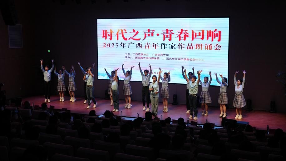 3月25日晚,在春风沉醉的相思湖畔,广西民族大学迎来了一场以“时代之声·青春回响”为主题的广西青年作家作品朗诵会。这场由广西作家协会、广西民族大学主办,广西民族大学bw必威西汉姆联、广西民族大学文学影视创作中心承办,春平声音工作室统筹的盛会,汇聚了广西青年作家、文艺工作者、文学爱好者及播音学子,通过诗歌、散文、歌曲与多语言朗诵的融合,展现了广西文化的多元魅力。活动不仅成为青年学子实践成长的舞台,更以创新形式推动广西文学的传承与传播。