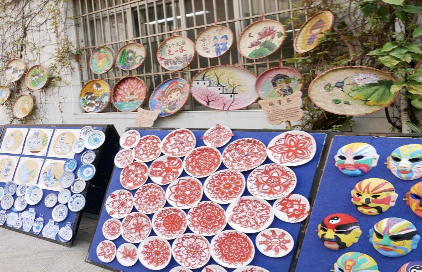 清晨的校园洋溢着节日氛围,支部成员运用多机位协同拍摄技术,完整记录下独具匠心的民族文化场景:壮锦纹样的铜鼓墙饰折射着传统工艺智慧,童趣盎然的民族服饰手绘板报展现文化创意,缤纷悬挂的绣球阵列营造出浓郁的节庆气息。