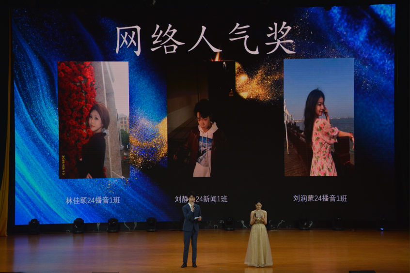 网络投票环节最终获得网络人气奖第一名的是24新闻1班的刘静远,获得第二名的是24播音1班的林佳颐,获得第三名的是24播音1班的刘润蒙。