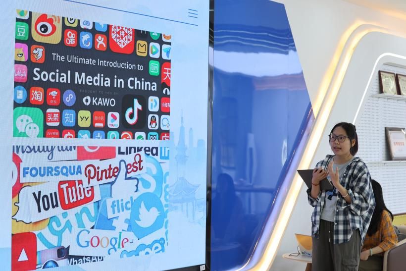 本次沙龙围绕社交媒体场景叙事和交互,深度解析其中的叙事策略、用户行为及平台算法对传播的影响。2024级新闻与传播专业硕士研究生覃子恬从“社交平台下国际传播的场景化转向”展开,探讨社交媒体对国际传播的影响、场景化叙事的特点及其在国际传播中的重要性,分析社交媒体受众互动的类型与影响因素,并提出国际传播策略需结合场景化叙事与受众互动。