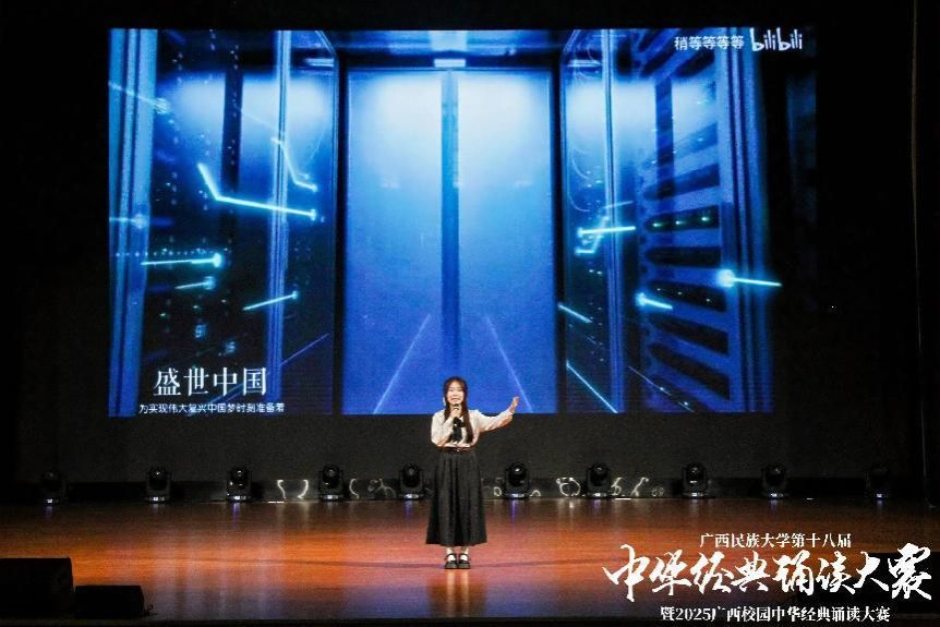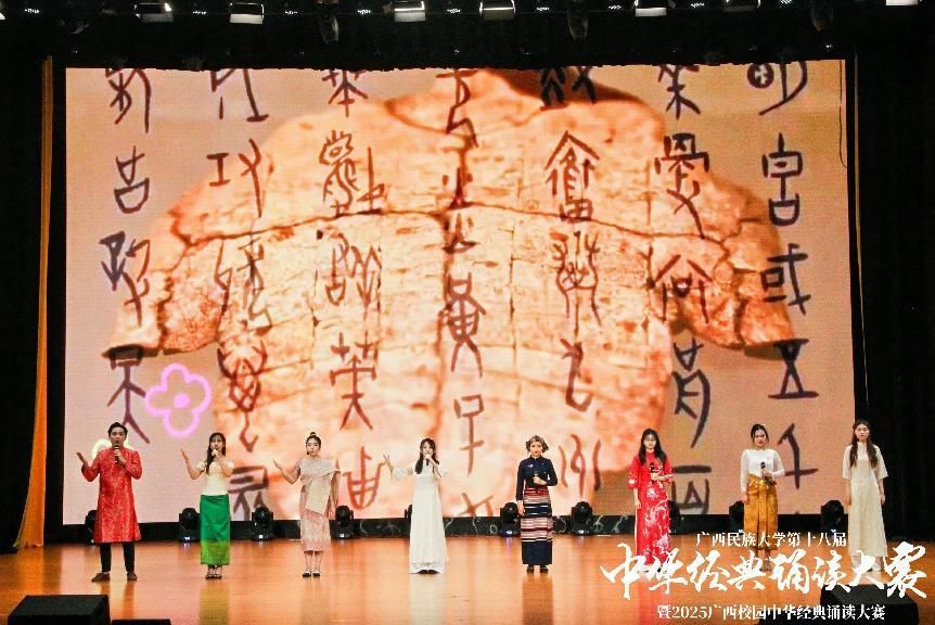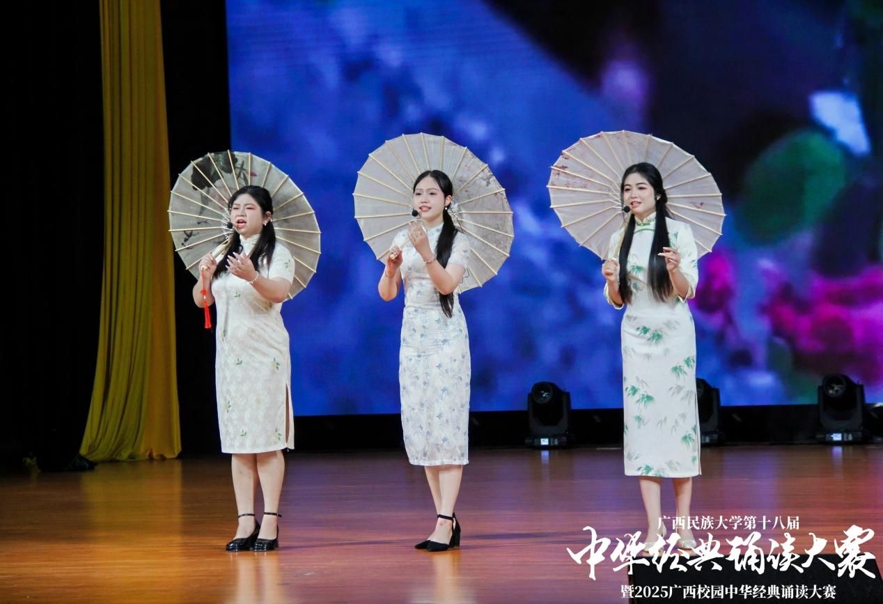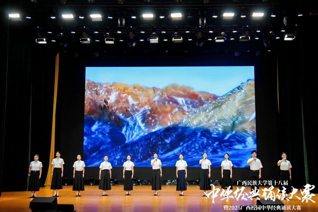 为深入学习贯彻习近平新时代中国特色社会主义思想,引领广大师生传承中华优秀传统文化,感受经典文字魅力,增强文化自信,汲取奋进力量。4月27日,由广西民族大学语言文字工作委员会、教务处、校团委主办,bw必威西汉姆联承办的学校第十八届中华经典诵读大赛决赛于思源湖校区大学生活动中心大礼堂举行。
