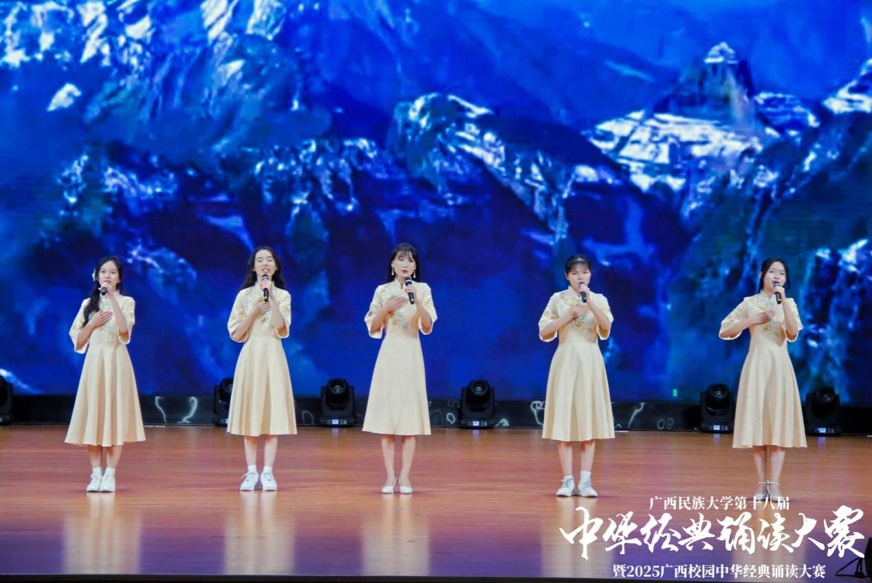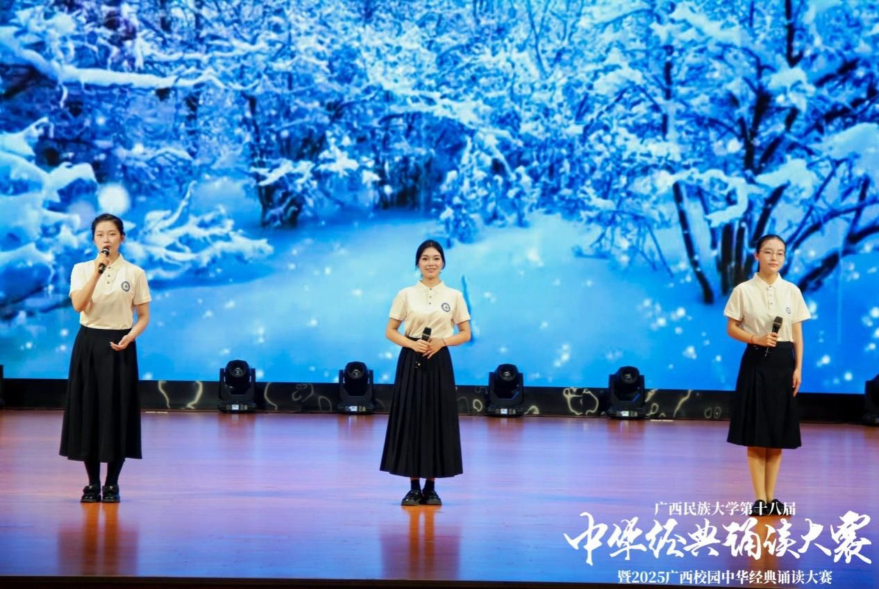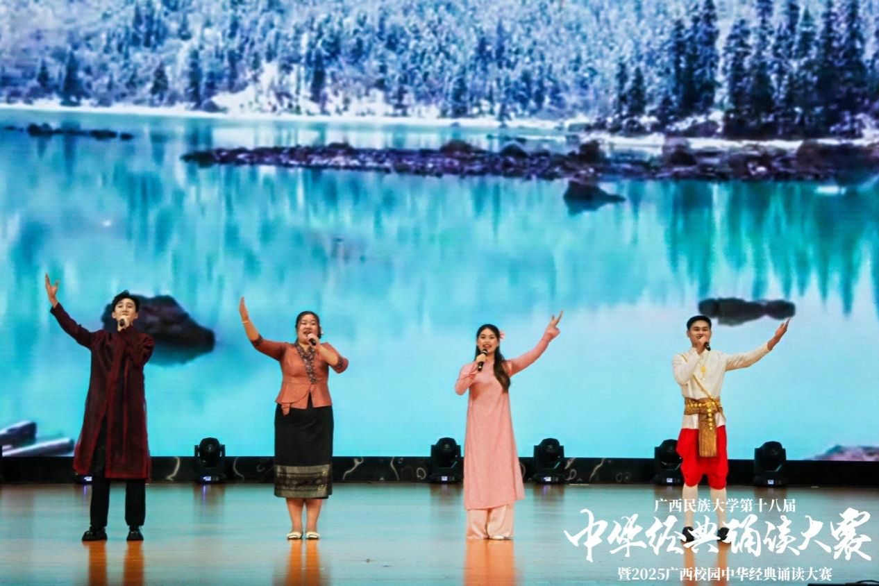 为深入学习贯彻习近平新时代中国特色社会主义思想,引领广大师生传承中华优秀传统文化,感受经典文字魅力,增强文化自信,汲取奋进力量。4月27日,由广西民族大学语言文字工作委员会、教务处、校团委主办,bw必威西汉姆联承办的学校第十八届中华经典诵读大赛决赛于思源湖校区大学生活动中心大礼堂举行。