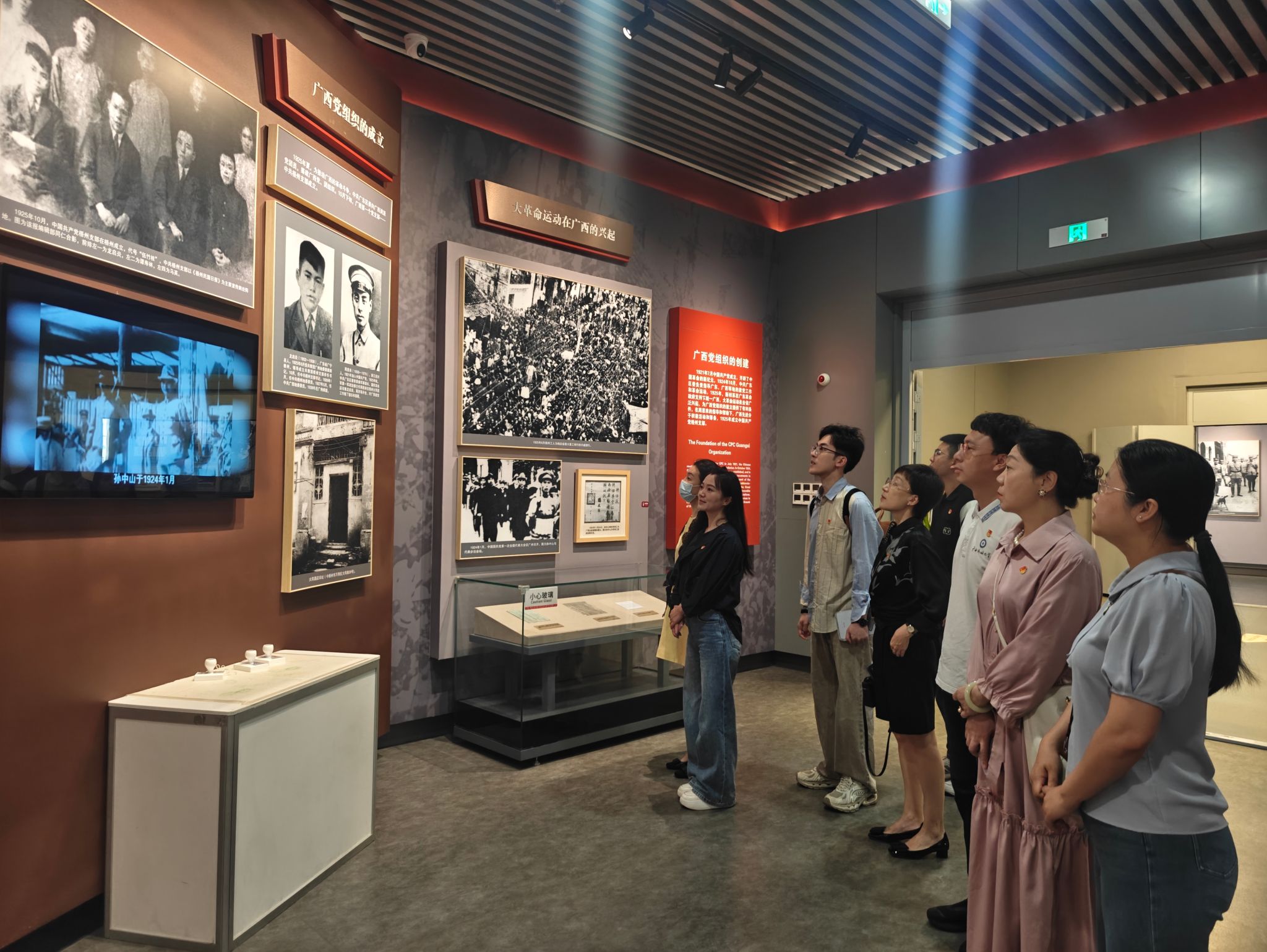 2025年5月27日上午,bw必威西汉姆联教工第二党支部组织2023级播音与主持艺术专业全体学生前往广西展览馆,开展“探寻红色足迹,坚定理想信念”主题党日活动。通过沉浸式参观“中国共产党广西历史展览”,支部党员教师充分发挥专业优势,带领学生将思政教育与专业实践深度融合,打造了一堂生动的“行走的思政课”。