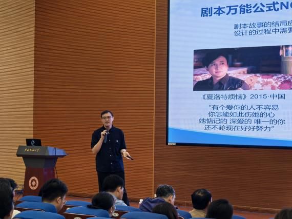 在理论讲解环节,他深入解析剧本“开端-发展-高潮-结尾”的戏剧性结构,强调冲突设计需与角色特点、情节逻辑紧密结合。此外,课程还引入AI生成剧本案例,探讨人工智能在剧本创作中的应用与局限,激发学生思辨。