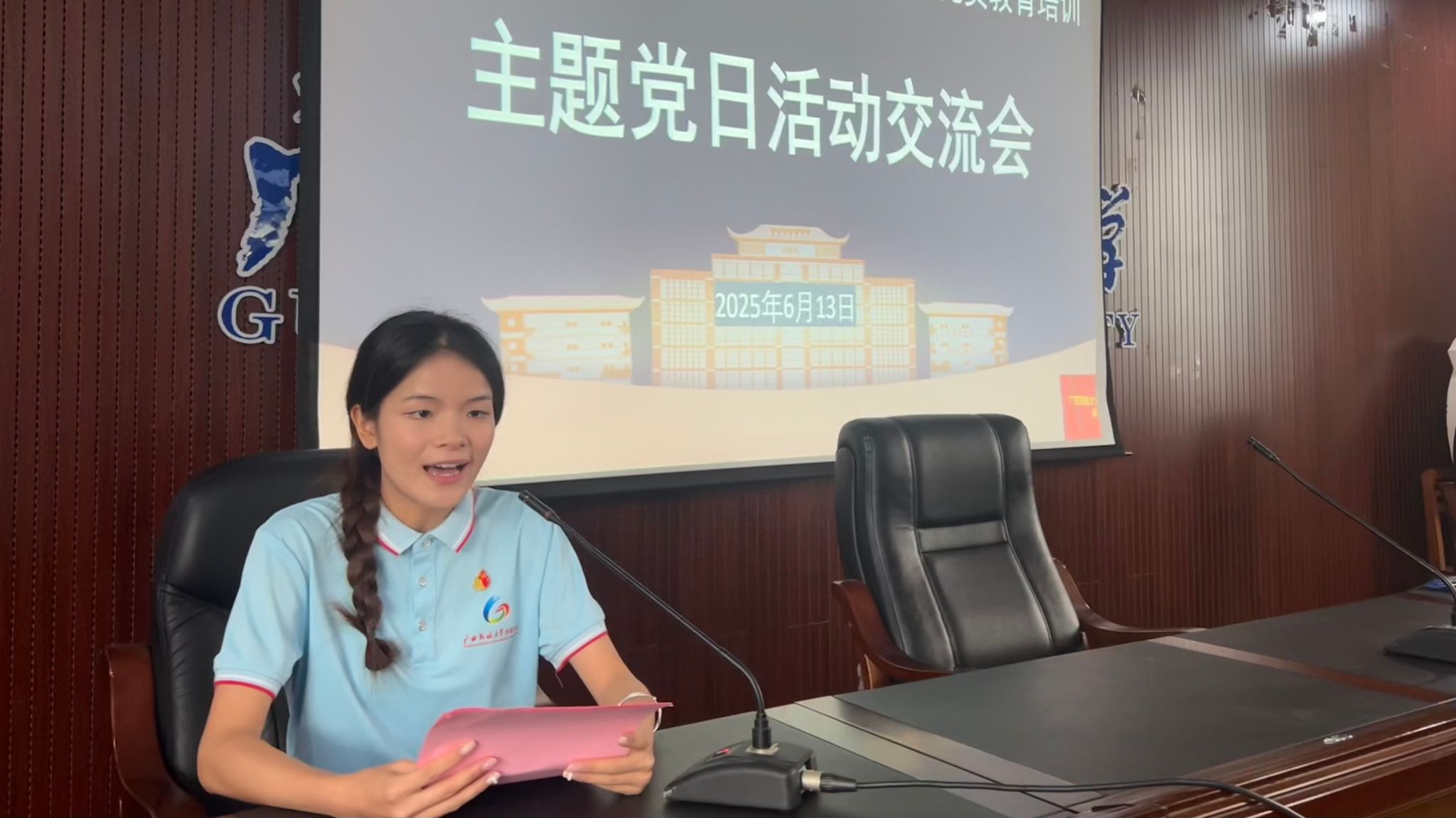 教工第二党支部代表黄旭捷、学生第四党支部代表李雨倩分别围绕五月主题党日活动实践成果作发言。