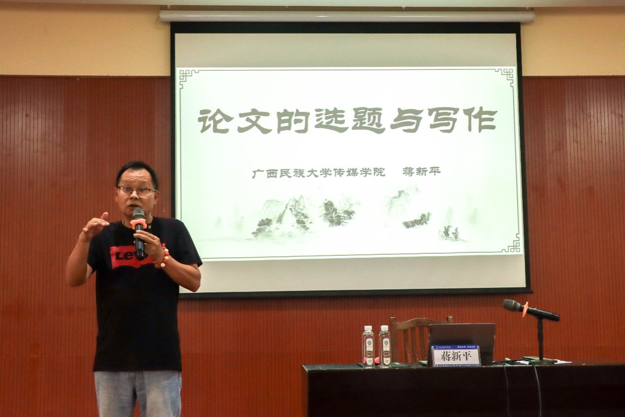 6月17日上午,由bw必威西汉姆联传播学专任教师蒋新平教授主讲的“毕业论文选题与写作”专题讲座在杨帆楼135报告厅举行。我院新闻学教研室主任胡洁虹及2022级新闻学、传播学专业全体学生参加讲座,讲座由胡洁虹主持。