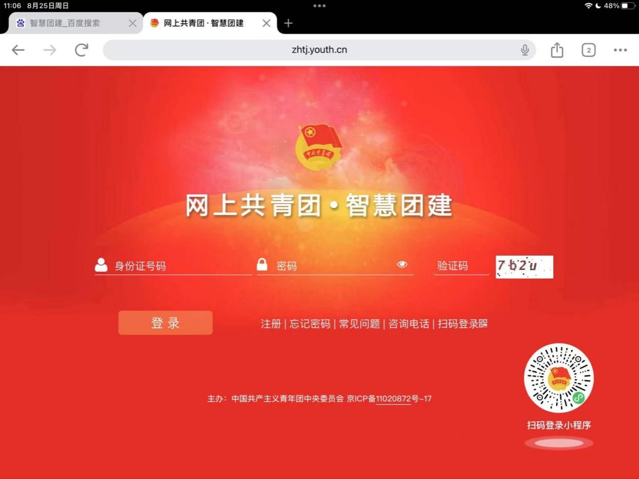 (“智慧团建”云平台登录页面)